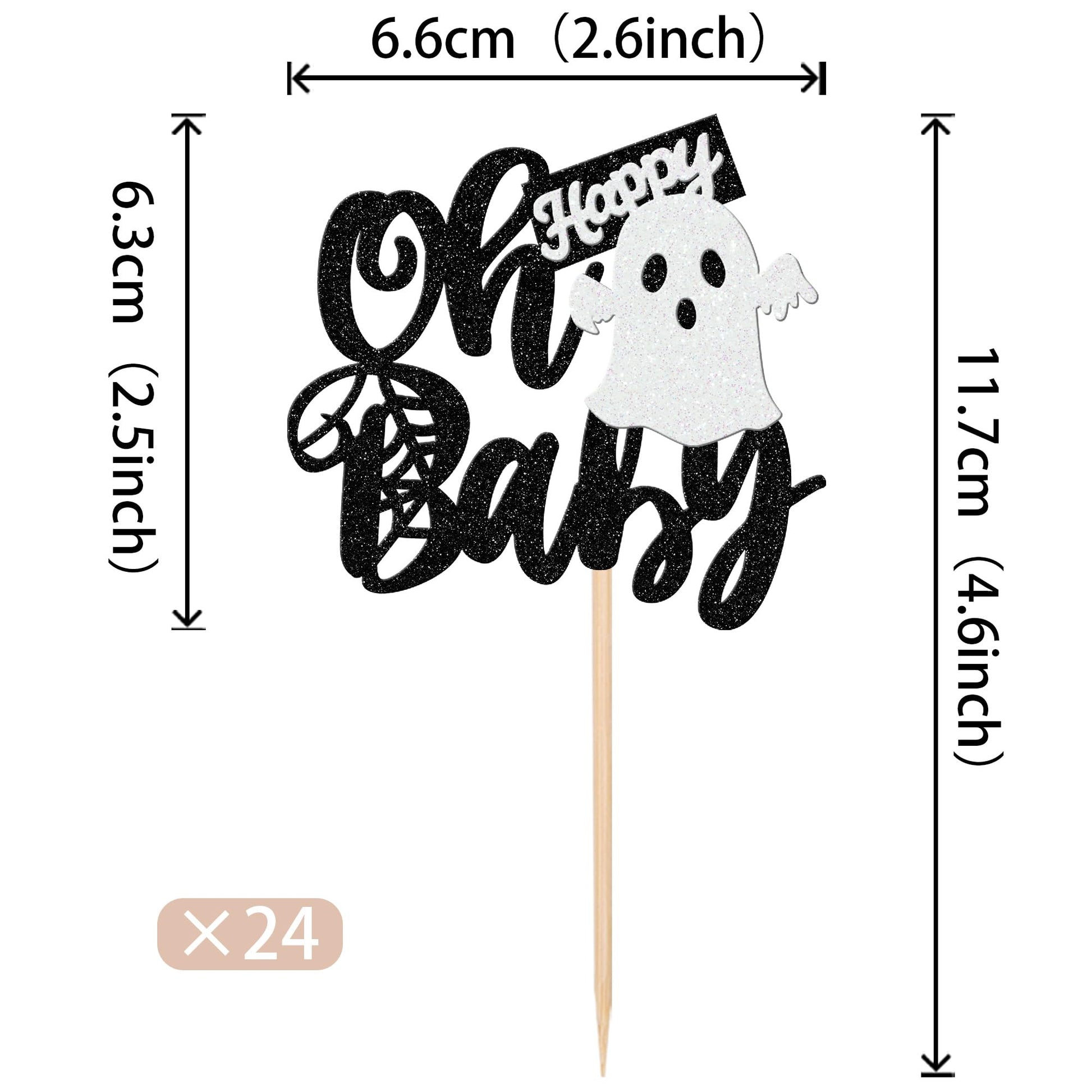 24 PCS Halloween Ghost Oh Baby Cupcake Toppers Glitter Spooky Baby Shower Cupcake Picks for Halloween Theme Baby Shower Kids Birthday Party Cake Decorations Supplies