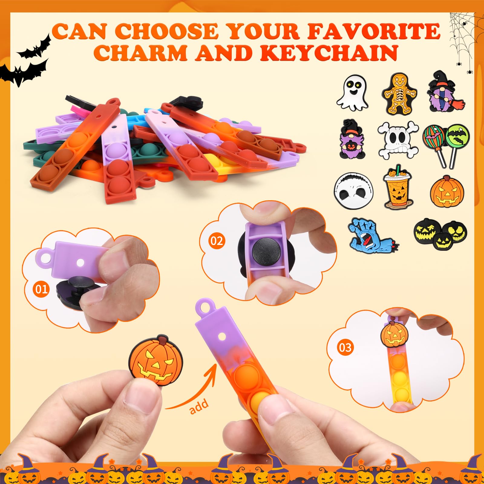 • 【Colorful DIY pop keychain】The new mini pop fidget keychain sensory toys come with 24 cartoon Halloween badges, so kids can design their own Pop Fidget keychain. This mini pop its can also be used as a keychain and carried around with you, or you can use it as a toy for kids to play with. The new mini key chain is a great gift for everyone. For children, these mini toys can improve the ability to calculate and think, which helps the brain to be active.