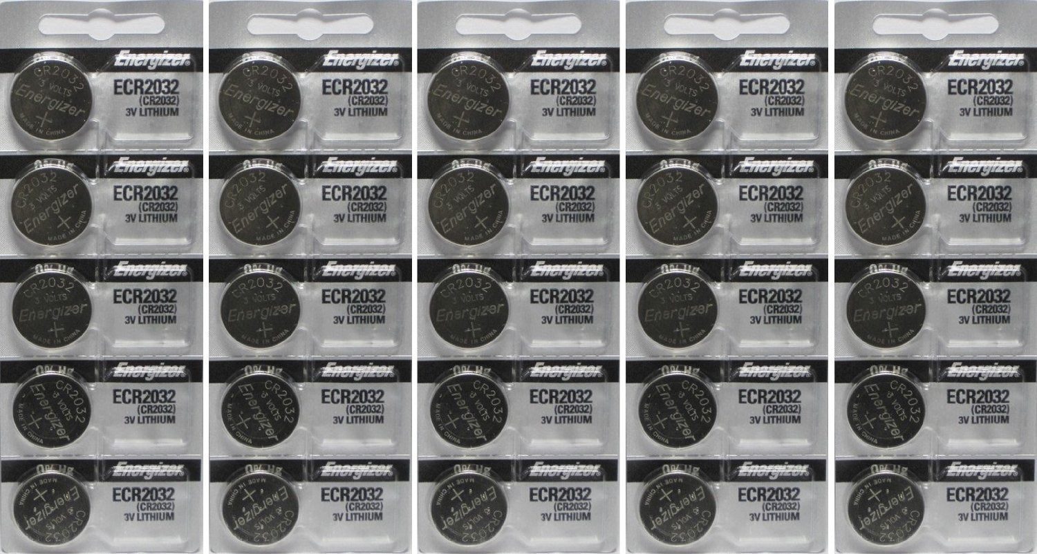25 Energizer 2032 Battery CR2032 Lithium 3v (5 Packs of 5)
