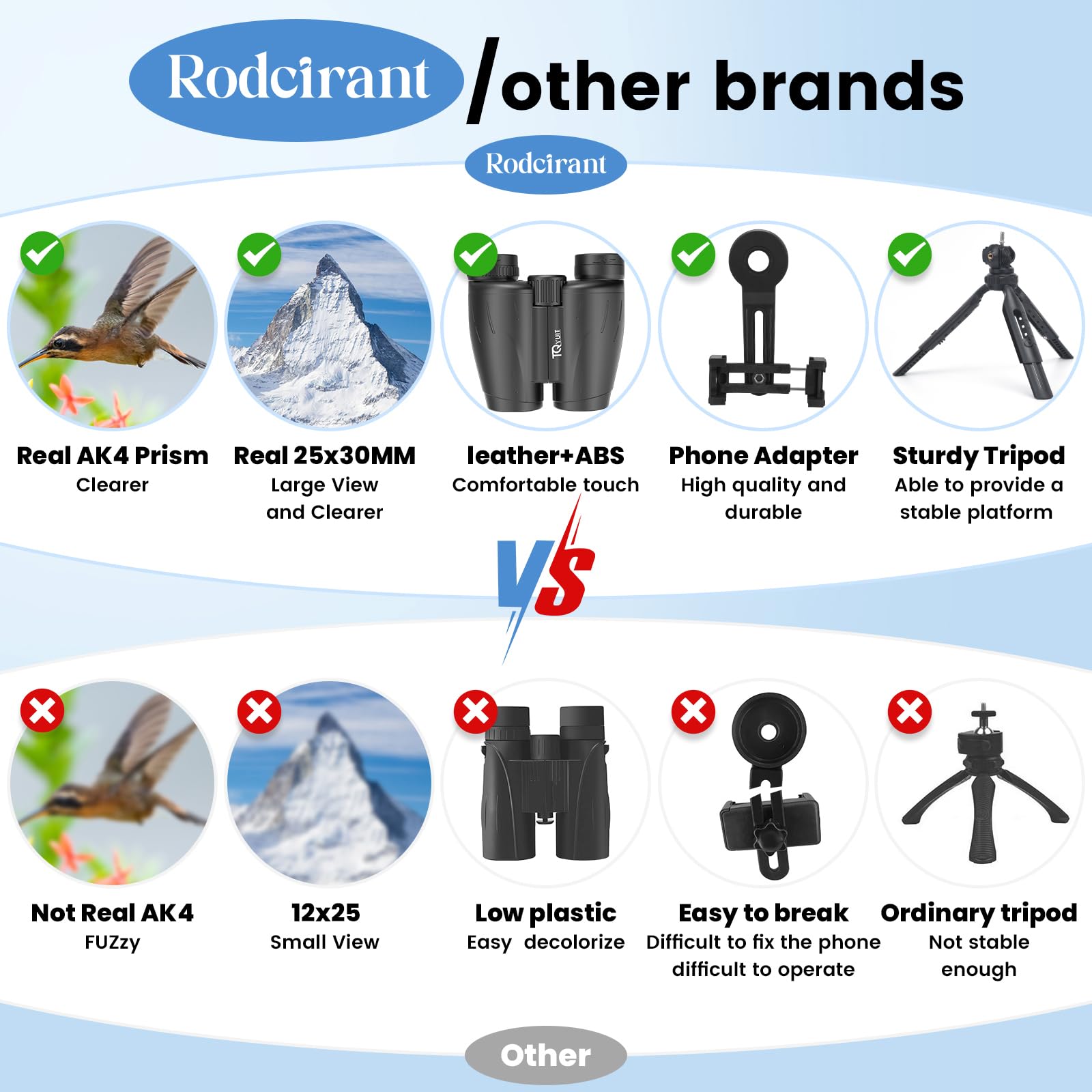 • Ultra-Compact and Lightweight Design with BAK4 Prism:Our binoculars feature a foldable, palm-size design and weigh a mere 0.6lb, making them incredibly portable. The BAK4 prism, commonly used in professional adult binoculars, restores colors vividly and minimizes dark edges, while fully multi-coated lenses enhance light transmission for optimal viewing.