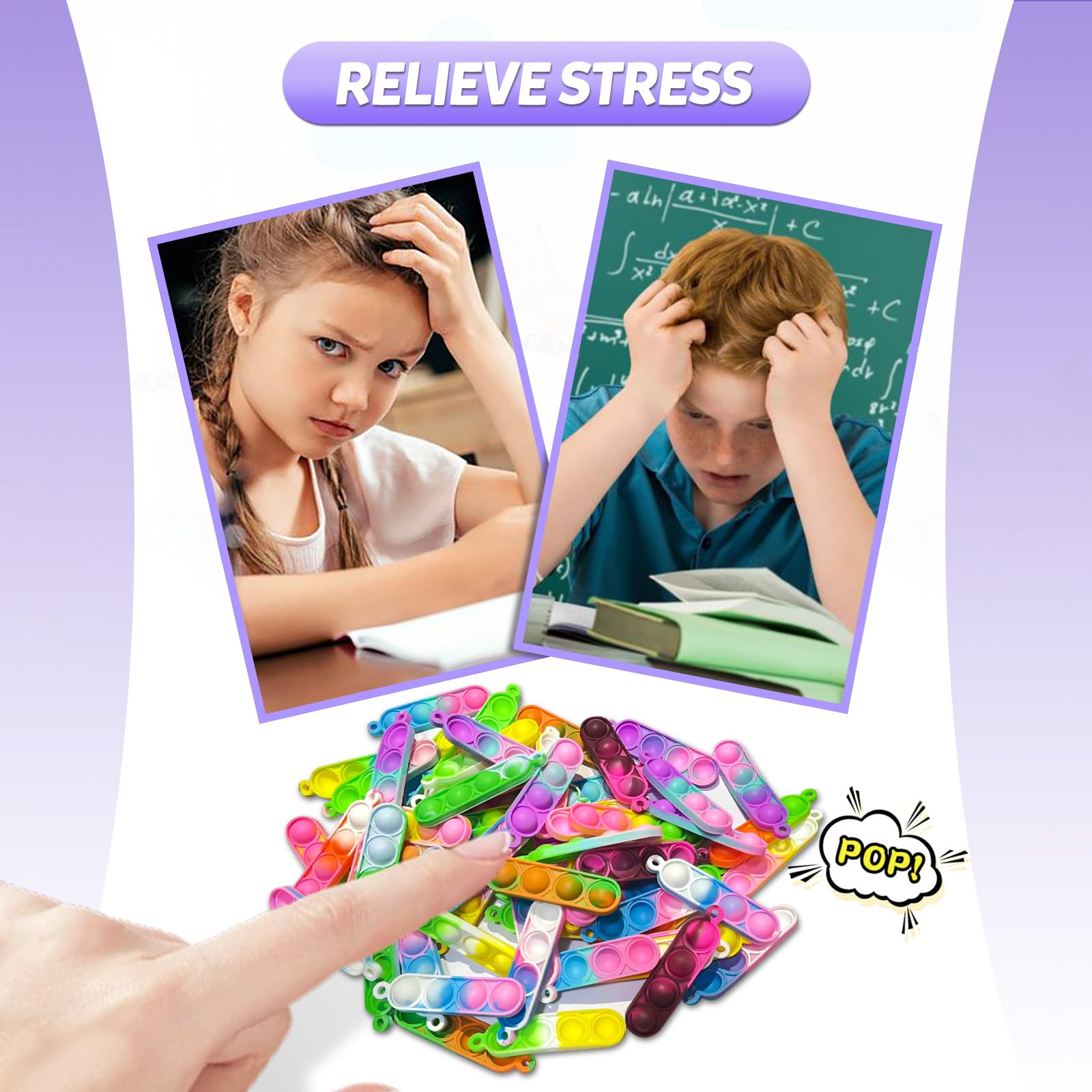 • 【Best Gift】130 pcs Mini pop keychain will be fashionable for Birthday gifts, Easter basket, Halloween, Christmas stocking stuffers, Children's day novelty gifts, office toys, gifts for class store prizes or as party favors.
