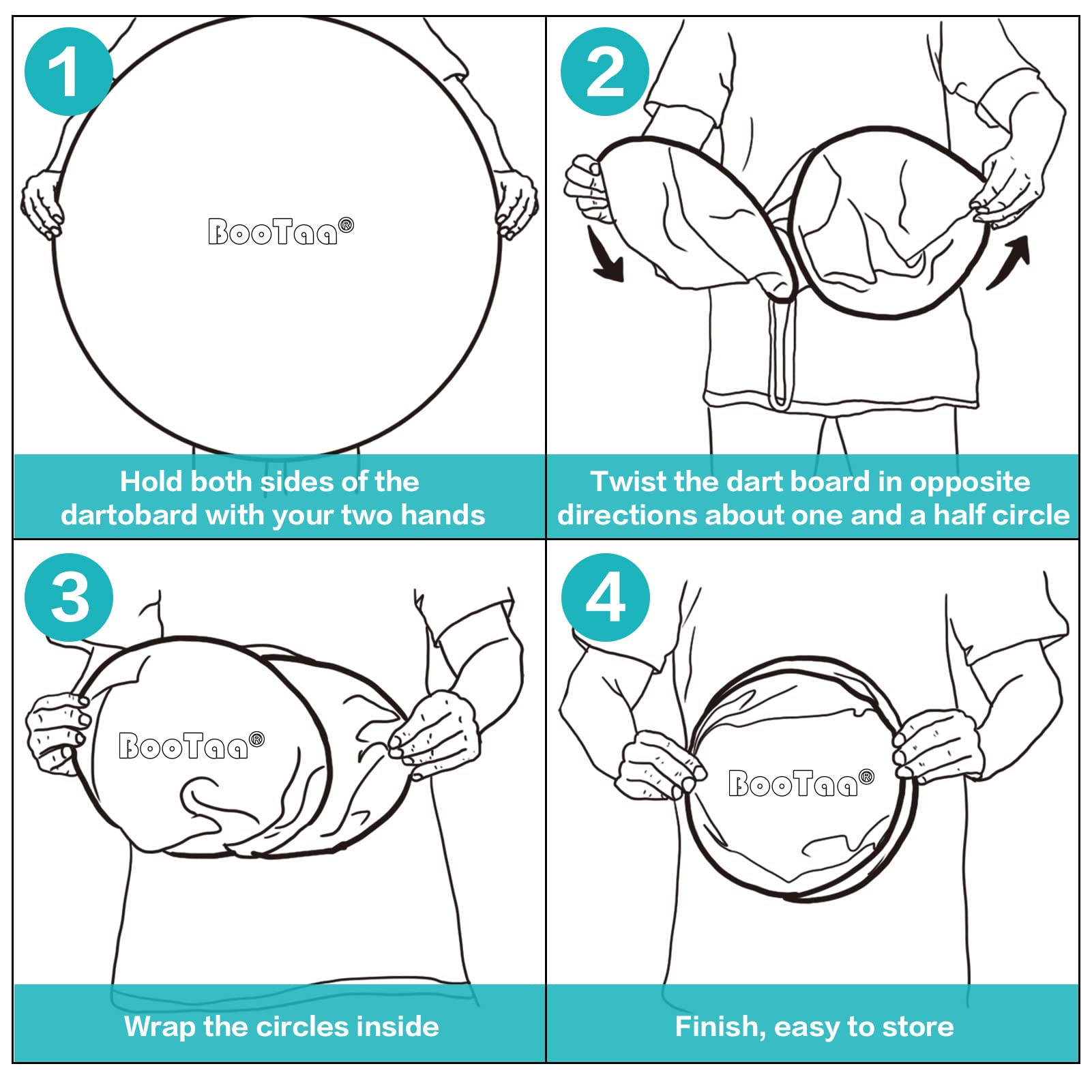 • FOLDABLE DESIGN & SAFE MATERIAL & EXTRA HOOK --- All the sticky balls have no sharp parts, safe for kids. The dart board kit for kids is foldable and portable design, you can enjoy it even travelling or camping, easy to pop up and fold. The toy dart board can be easily mounted indoor or outdoor. Just simply hang up the dartboard and you can enjoy the game. Enough accessories for friends to play together. Stress relief toy for kids, adults.