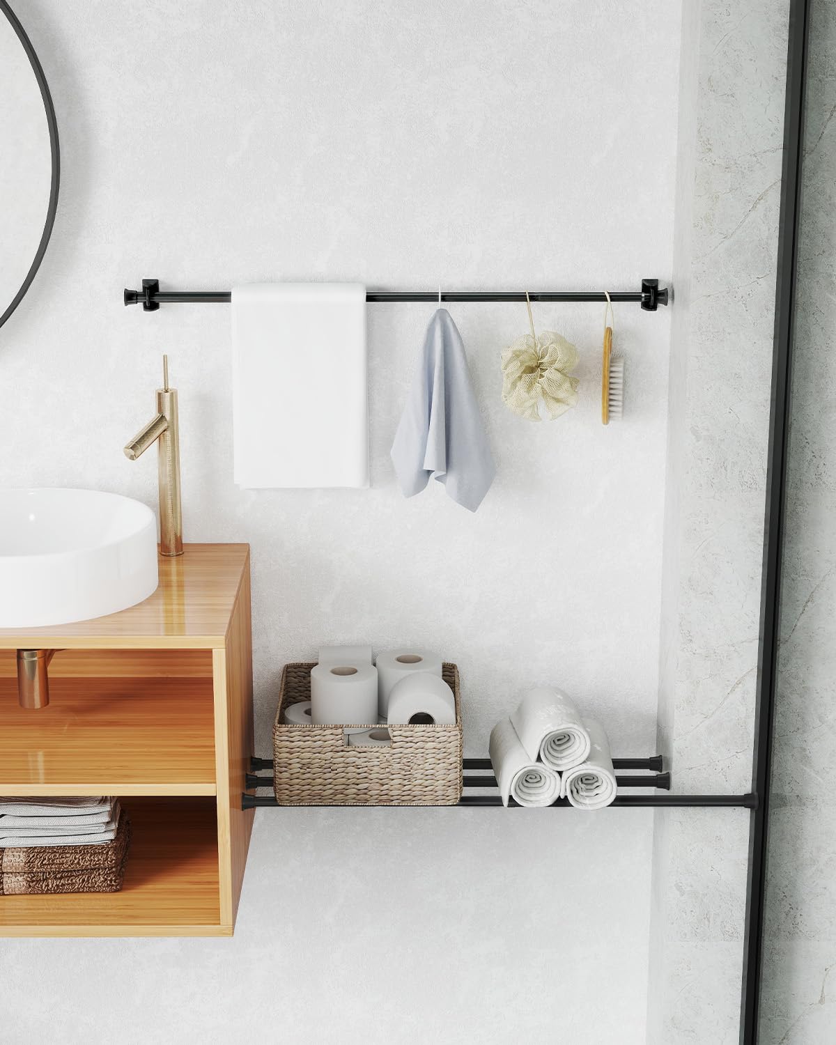 • 【Skid-resistant】:This black tension curtain rod we've incorporated our latest high-strength built-in spring, rubber Skid-resistant heads at both ends of the rod. It offers excellent Skid-resistant properties, so you don't have to worry about it falling down.
