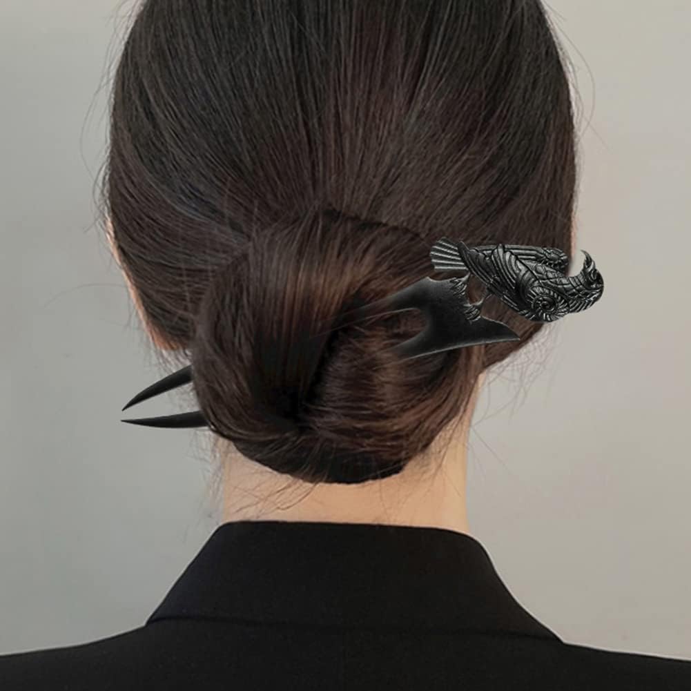 2pack U Shaped Viking Raven Metal Hair Prong Forks French Hair Styling Pins Black Wicca Witch Sticks Renaissance Festival Acceossories for Women Perfect for Thick Hair