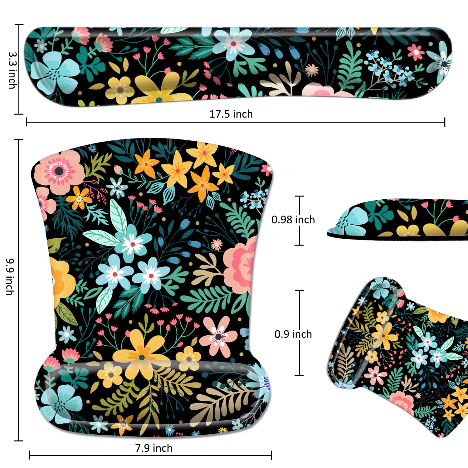 Details: 3 in 1 Ergonomic Mouse Pad with Wrist Rest and Keyboard Wrist Support Set with Coaster, Cute Wrist Pad with Non-Slip Rubber Base and Raised Memory Foam, Easy Typing & Pain Relief, Weeds Flower