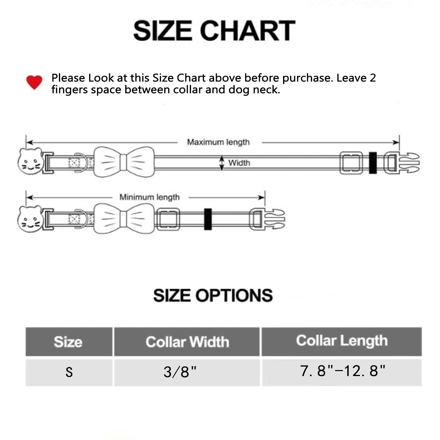 • Pack of 3 Cat Bow Tie Collar with cute bells; Neck 7.8'-12.8', Width 3/8'; This festive Holiday /Halloween, Thanksgiving, Christmas pet collar fits for cats, kittens.