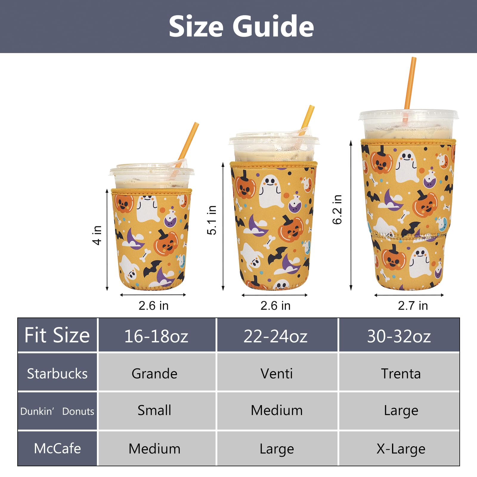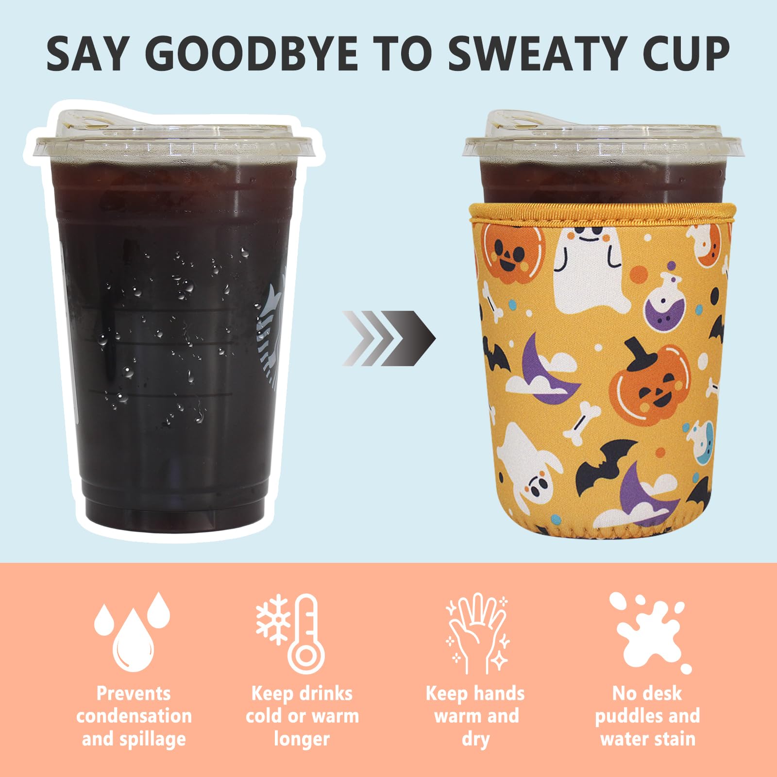 3 Pack Reusable Iced Coffee Sleeves - Xumbtvs Insulator Sleeve for Cold Beverages, Neoprene Coffee Cup Holder (Halloween Boo)
