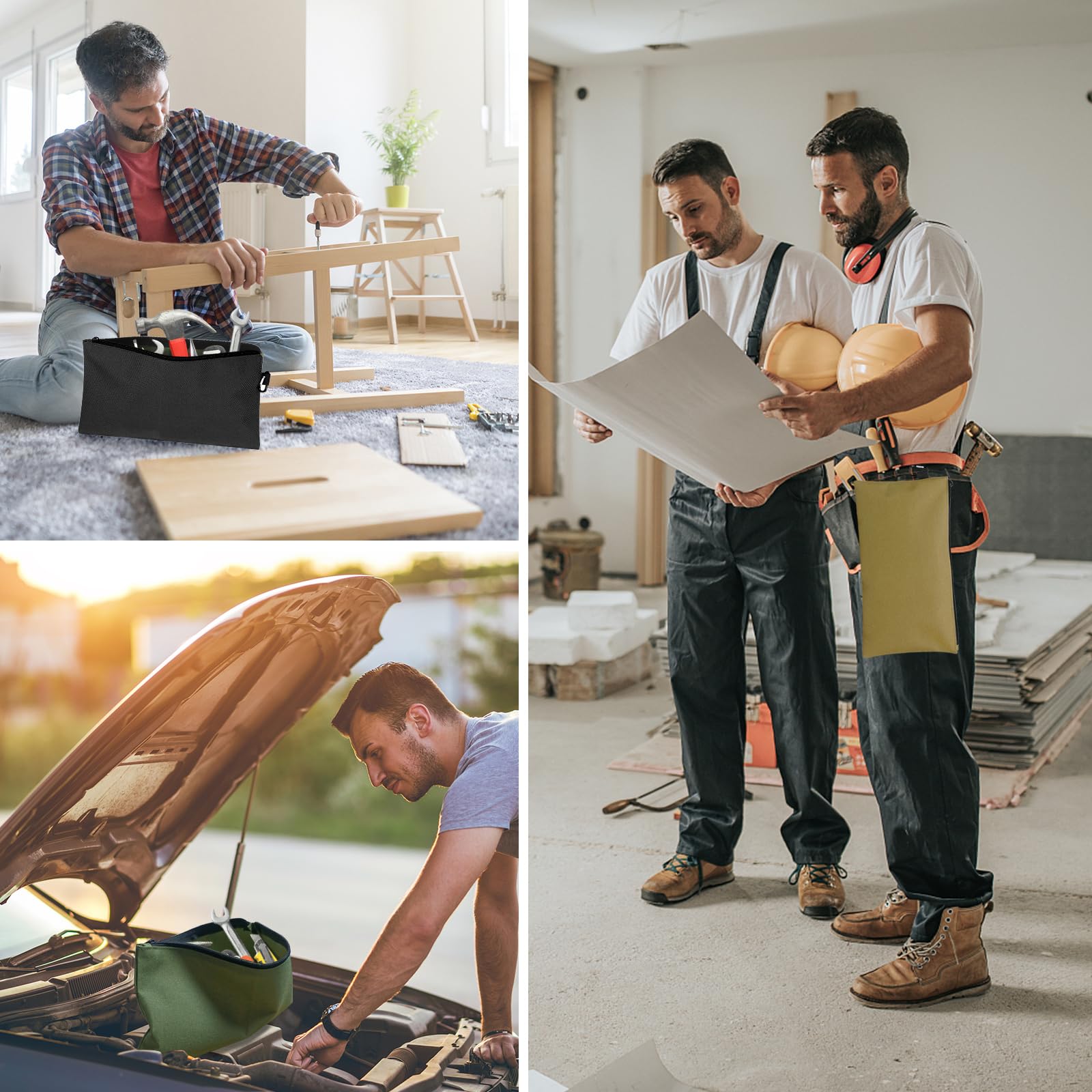 • Large Capacity & 3 Different Colors: The tool pouch bag measures 12.6 x 7 inches, with enough space to organize tools. Keep your tools safe and help you work efficiently. 3 different colors of small tool bags, to help you find what you need quickly