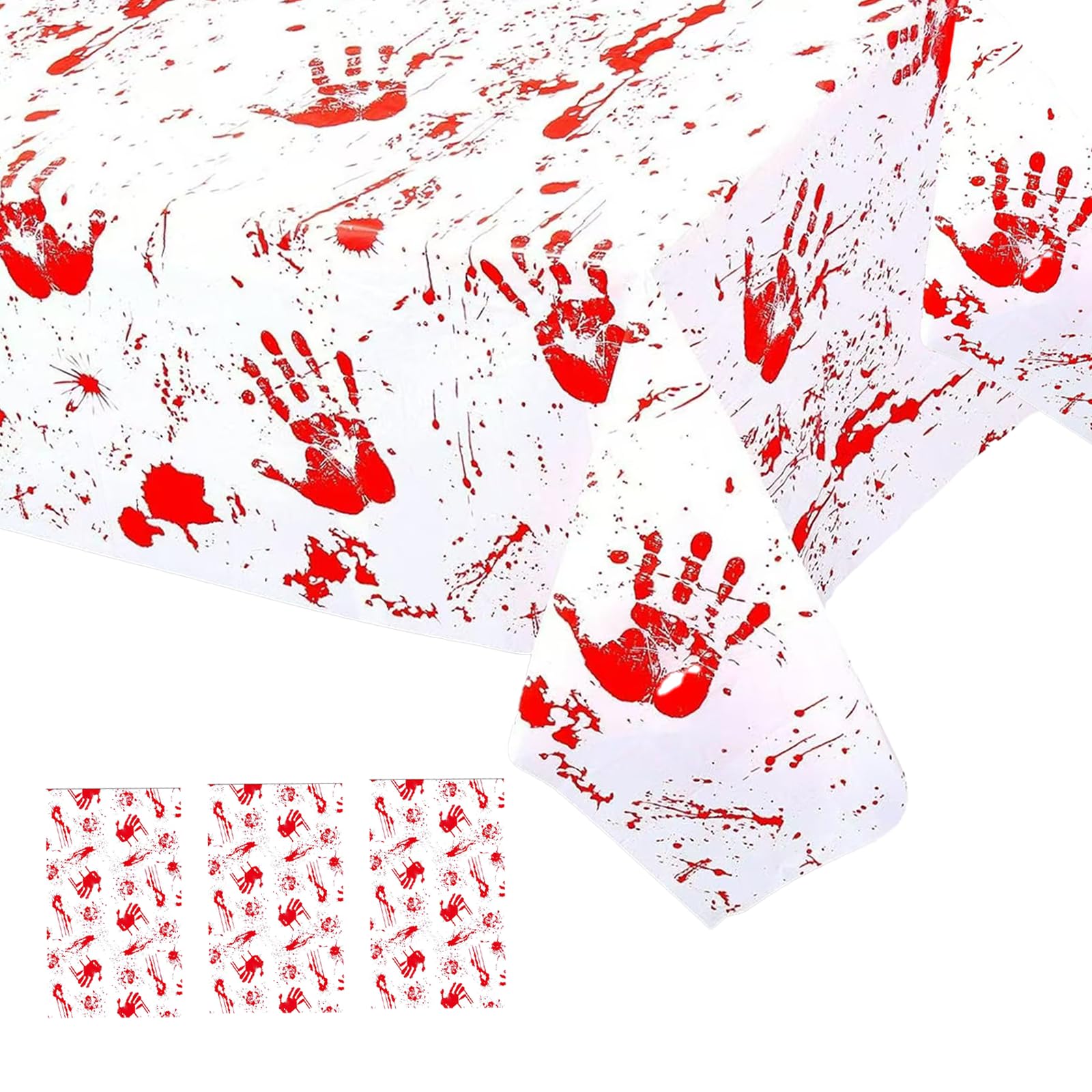 3 Pieces Bloody Handprint Tablecloth - 54x108 Inches Disposable Blood Splatter Themed Plastic Table Cover with Red Handprints for Halloween Horror-Themed Party Decorations, and Scary Movie Nights