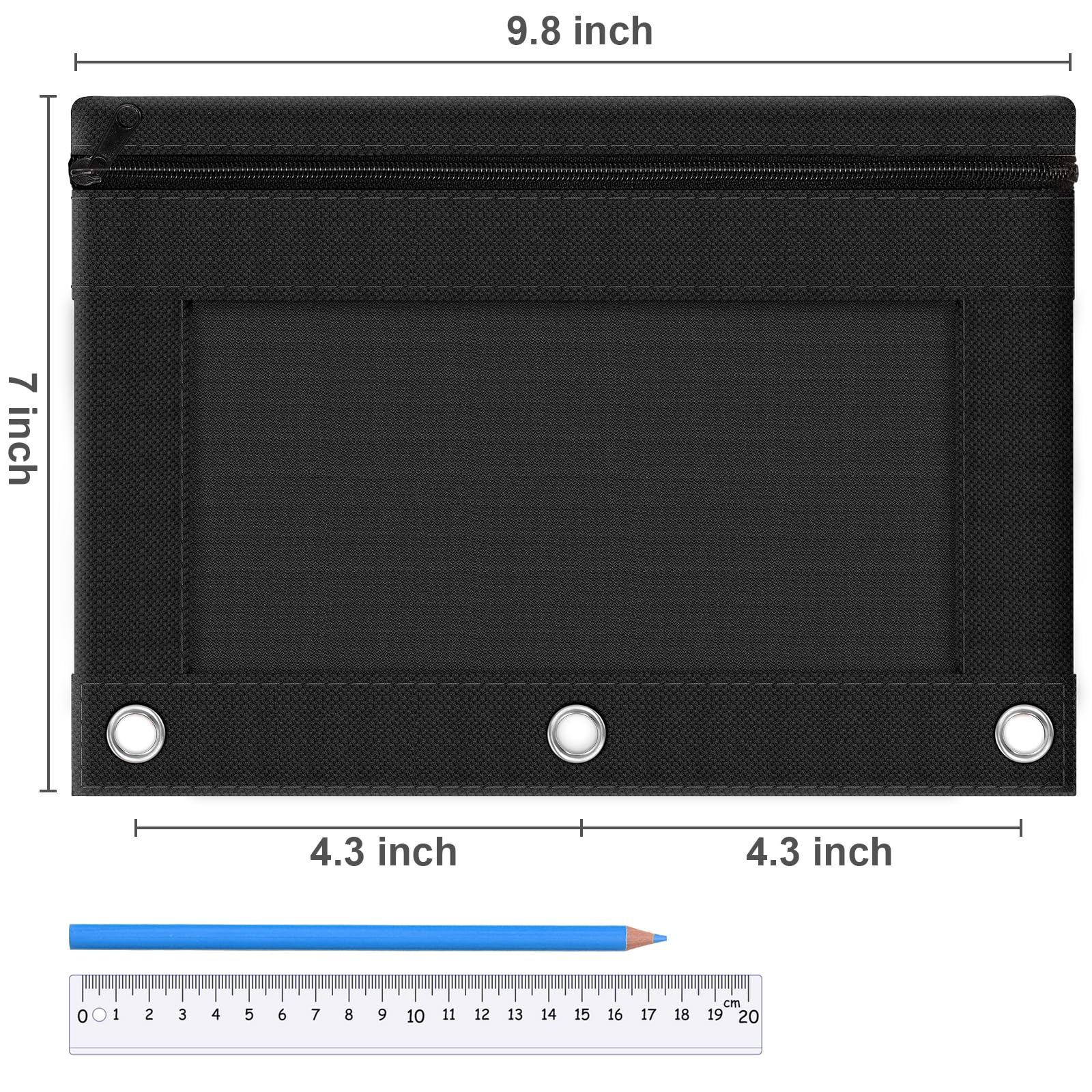 • Apposite Size - Each 3-ring binder pouch is 9.8 inches x 7.1 inches, the zippered pencil bags have 3 copper holes (The distance between the holes is 4.3 inches), suitable for the standard 3-ring binders, and can be placed in folders. And you can keep it in your binder without losing it and there are no loose items in your backpack.