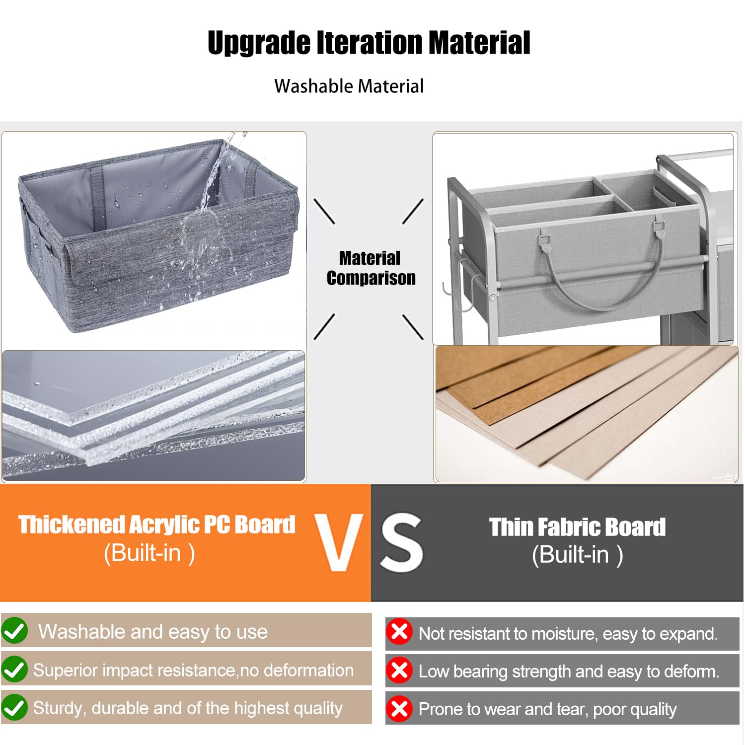 • Dividers Design: The diaper cart comes with 4 detachable dividers on the first layer and 2 detachable dividers on the second layer. Each divider can be securely fastened using magic tape, making it the ideal baby storage cart. These compartments allow for organized storage, accommodating all essential baby items such as diapers, wet wipes, bottles, bibs, onesies, changing pads, baby toys, medications, clothing, formula, and more.