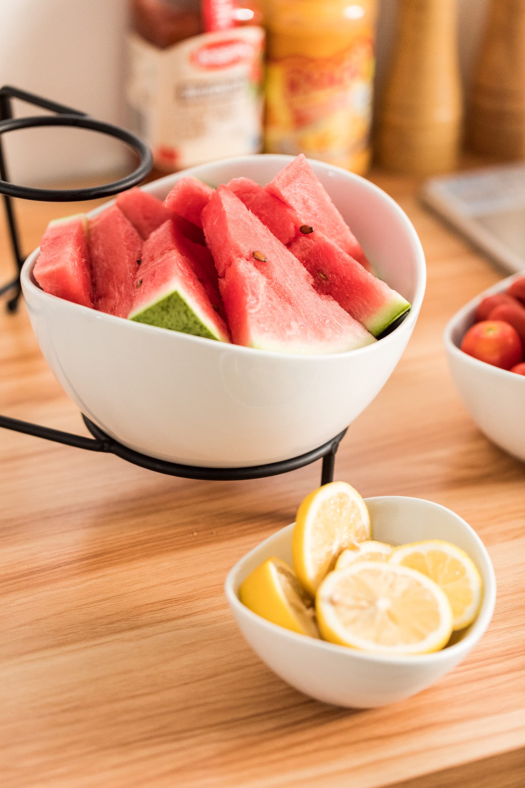 • Elegant Design: The trangle rack is strong enough to hold the porcelain oval bowls, provides more balance & stability. The bowls are different sizes, the curved edge which makes it extra stylish, looks great and does not take up a lot of space