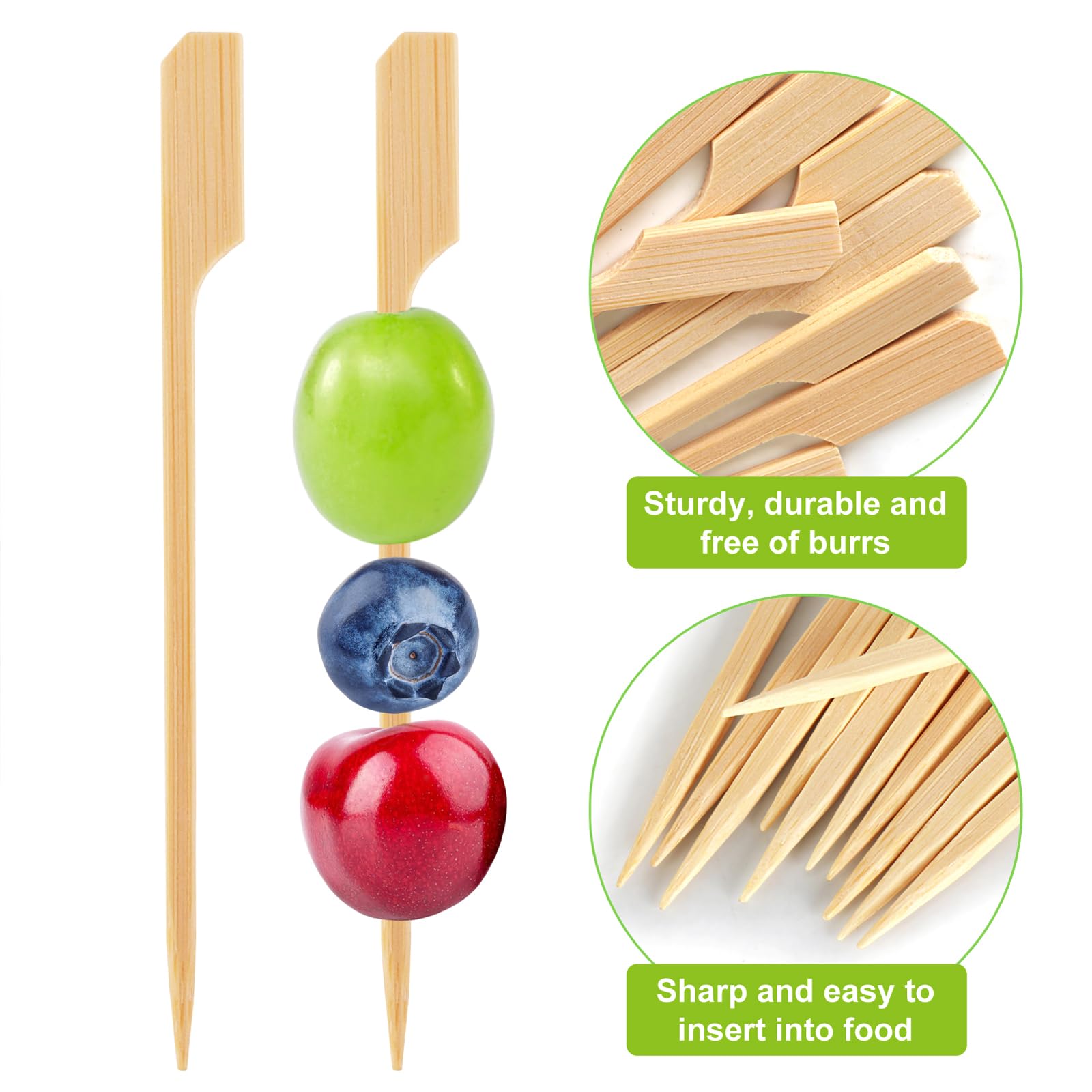 • MORE ERGONOMIC DESIGN: Our wooden skewers feature a flat skewer shape with paddle-like designs at the top for easy gripping, and a square wood skewer shape to prevent food from spinning as it rotates. Compared to ordinary toothpicks, this design is not only aesthetically pleasing, but also practical, making it easier for you and your guests to use cocktail skewers while enjoying delicious food.