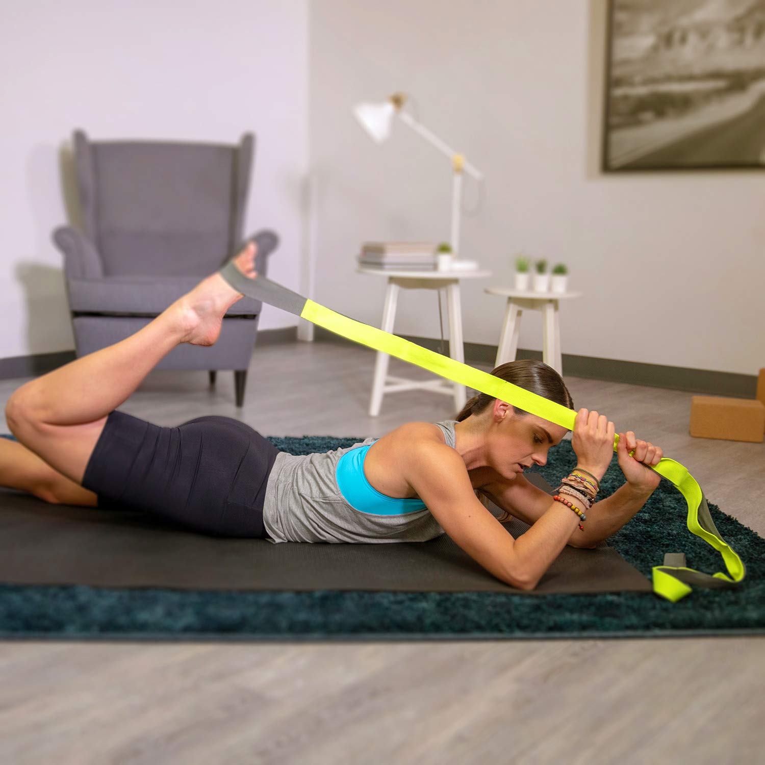 • Next, take your stretching to the next level with our 60 inch stretching strap, great for hamstrings, quads, and calves. It’s comfortable, easy to use, and shows quick results