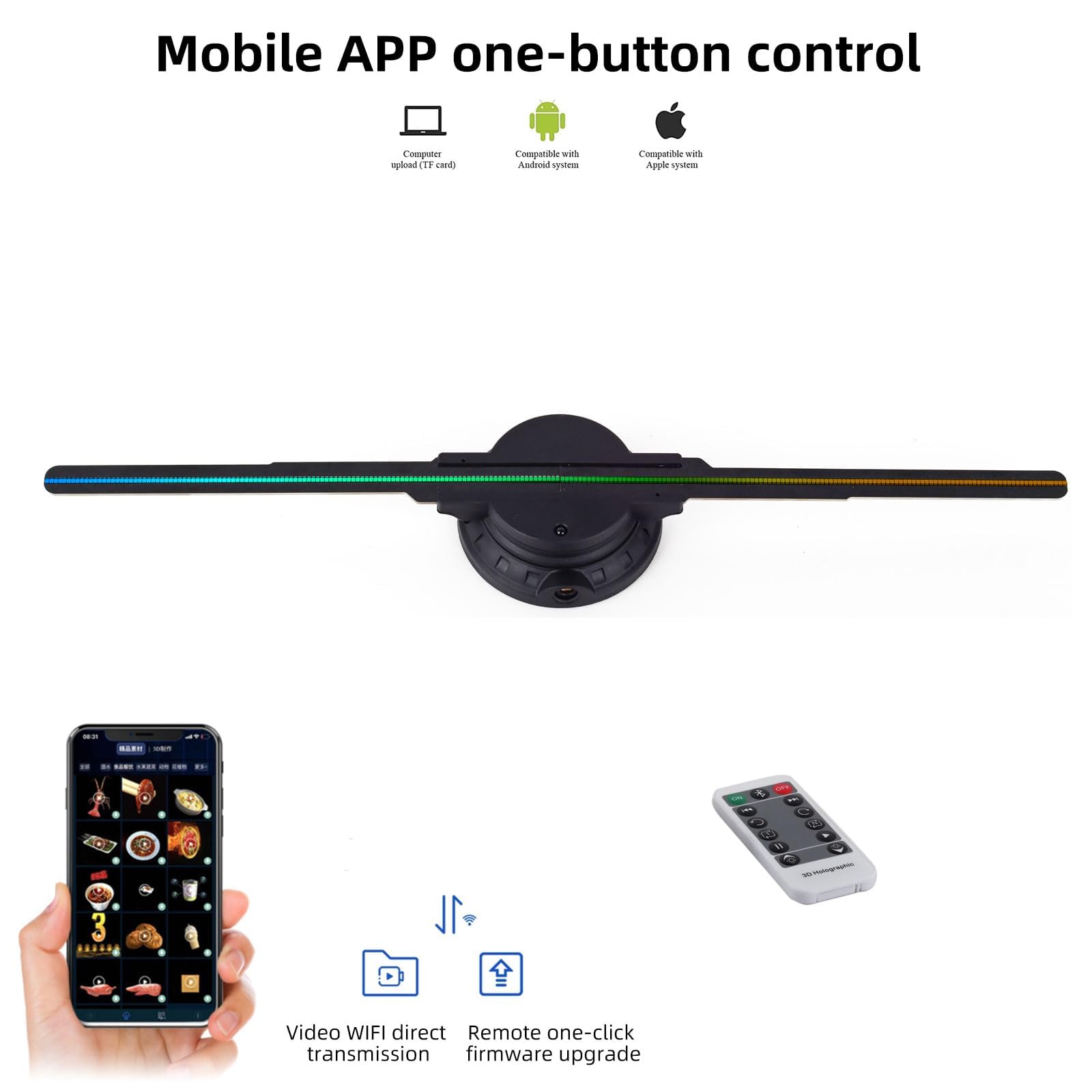 • User-friendly remote control Easily operate your holographic fan projector with the included remote control. You can adjust settings, switch content, and manage the display remotely, providing convenience during busy events or installations
