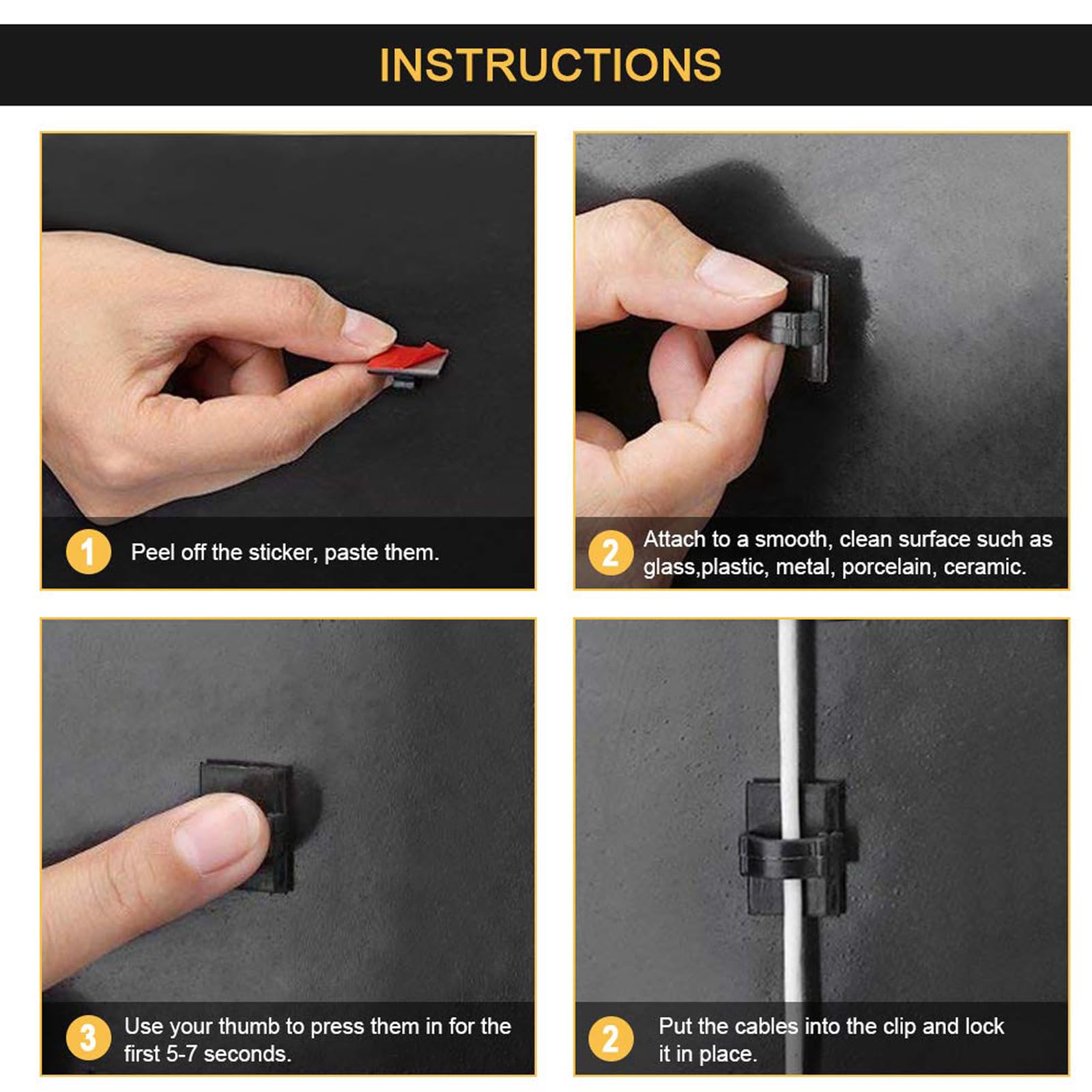 Please use the adhesive cord clips for wall 24 hours later to allow the glue adhesive better.