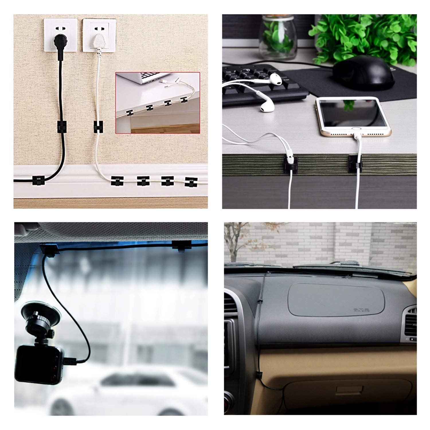 • 📍【Wildly Use】Cable clips are useful for organizing computer cables, USB cables, TV cables, Christmas lights cable and stick on most surface in home, office and car.