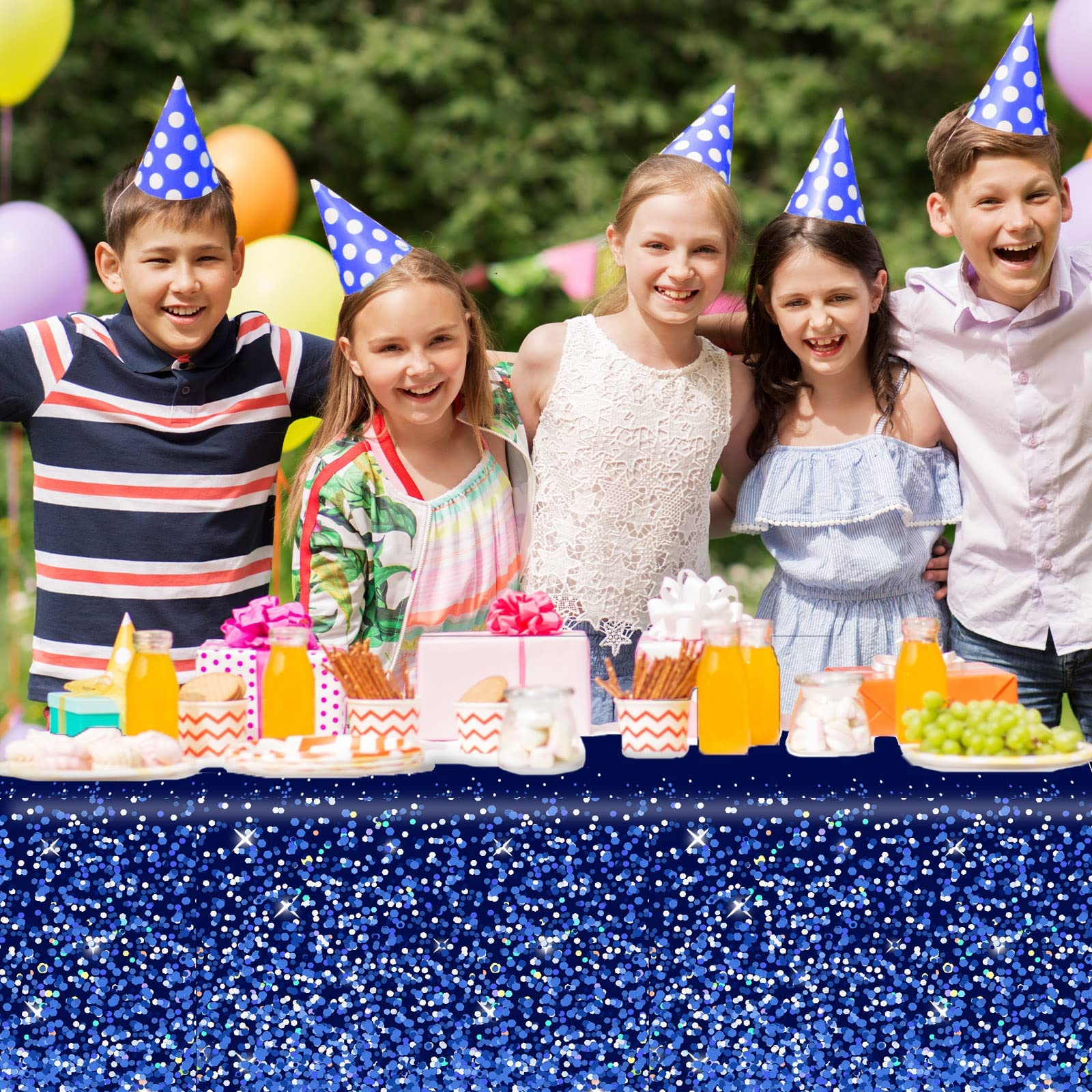 3 pcs Blue elegance birthday party tablecloths, Blue Sequins Holiday party decorations, Blue disposable plastic tablecloths, Blue Birthday Party Tablecloths .