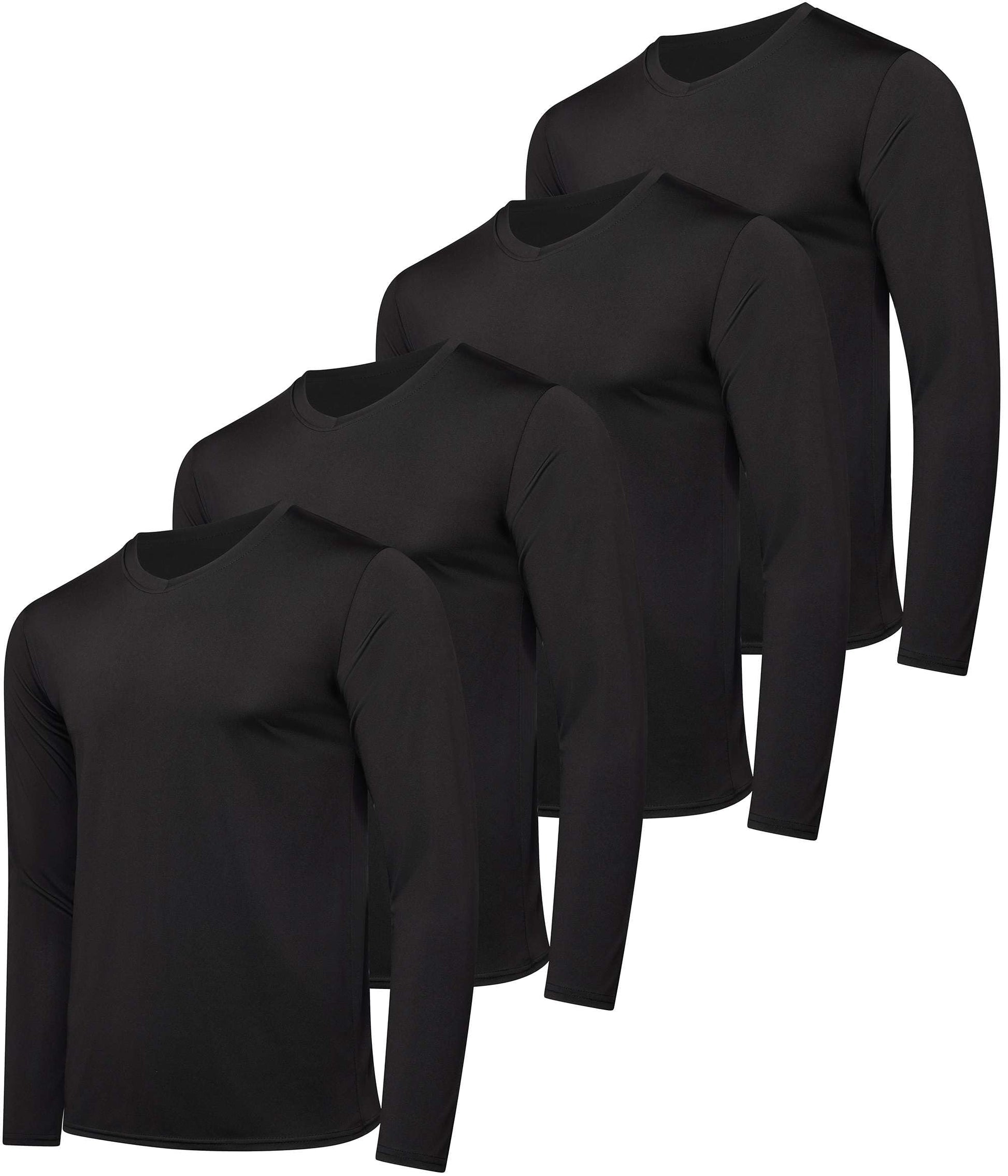 4 Pack: Mens Long Sleeve V Neck Shirt Top Shirts for Men T Shirt Tee Workout Rash Guard Quick Dry Fit Gym Tees Athletic Active Compression Work Casual Exercise Running Sports - Set 6,L