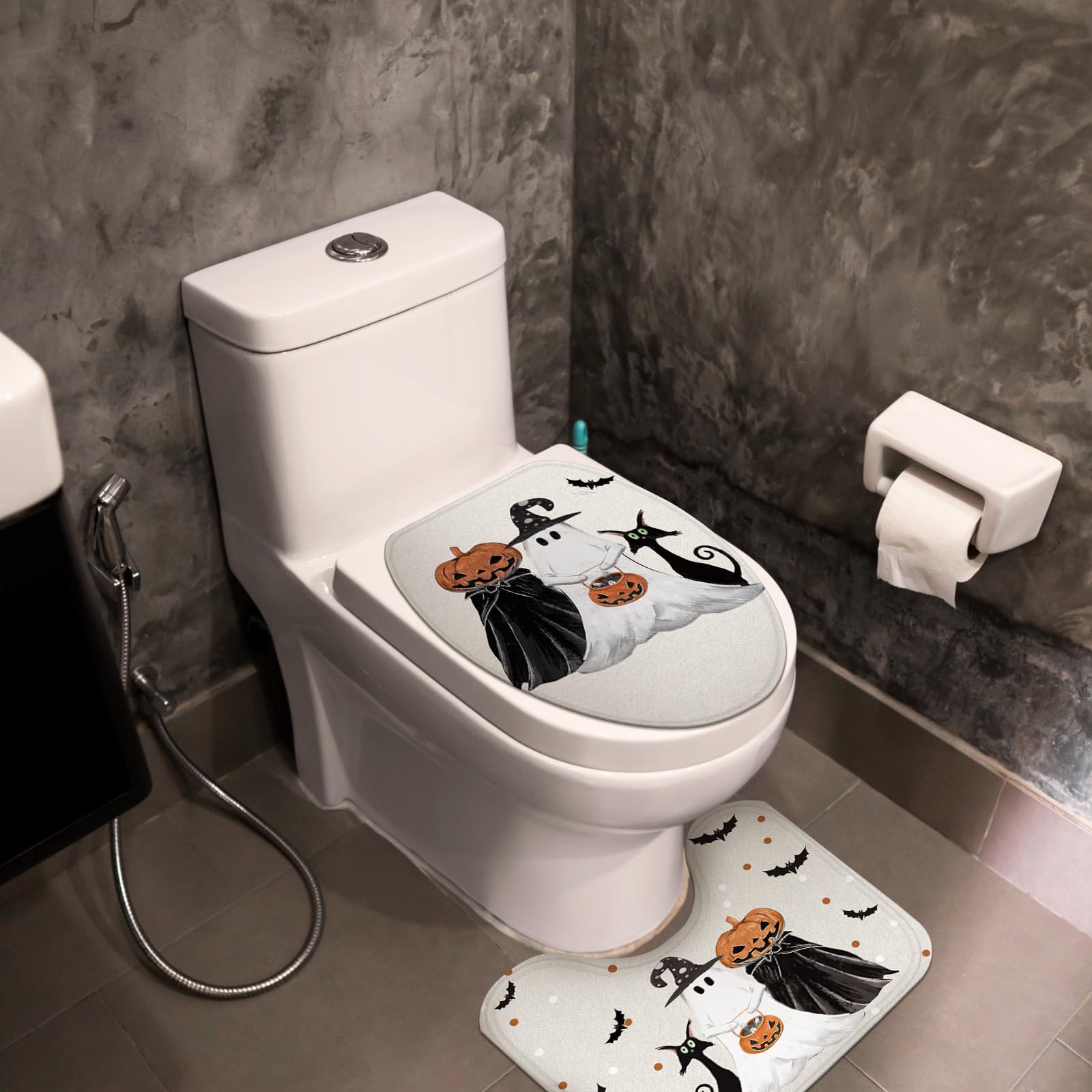 4 Pcs Halloween Ghost Shower Curtain Set 72" Halloween Bathroom Decor Set with 12 Hooks Non Slip Rug Toilet Lid Cover and Bath Waterproof Mat Restroom Shower Accessories Haunted Spooky House Decor