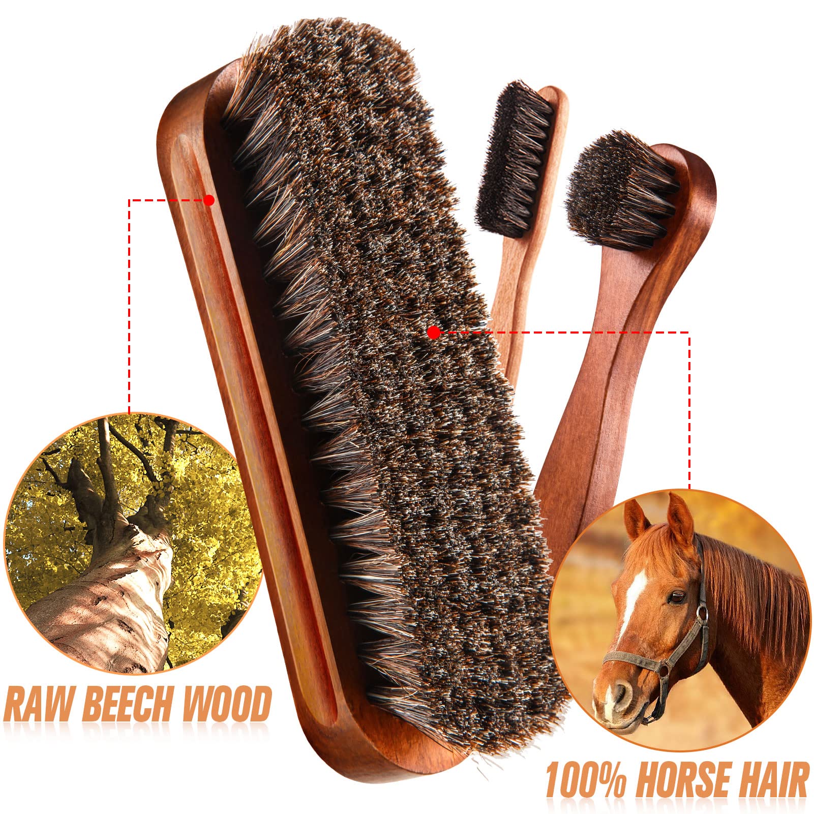 • Material - The brush is made of horsehair and wood, cleaning and shining your shoes the cloth is made of microfiber, this set could meet your daily needs of different footwear for an amazing performance