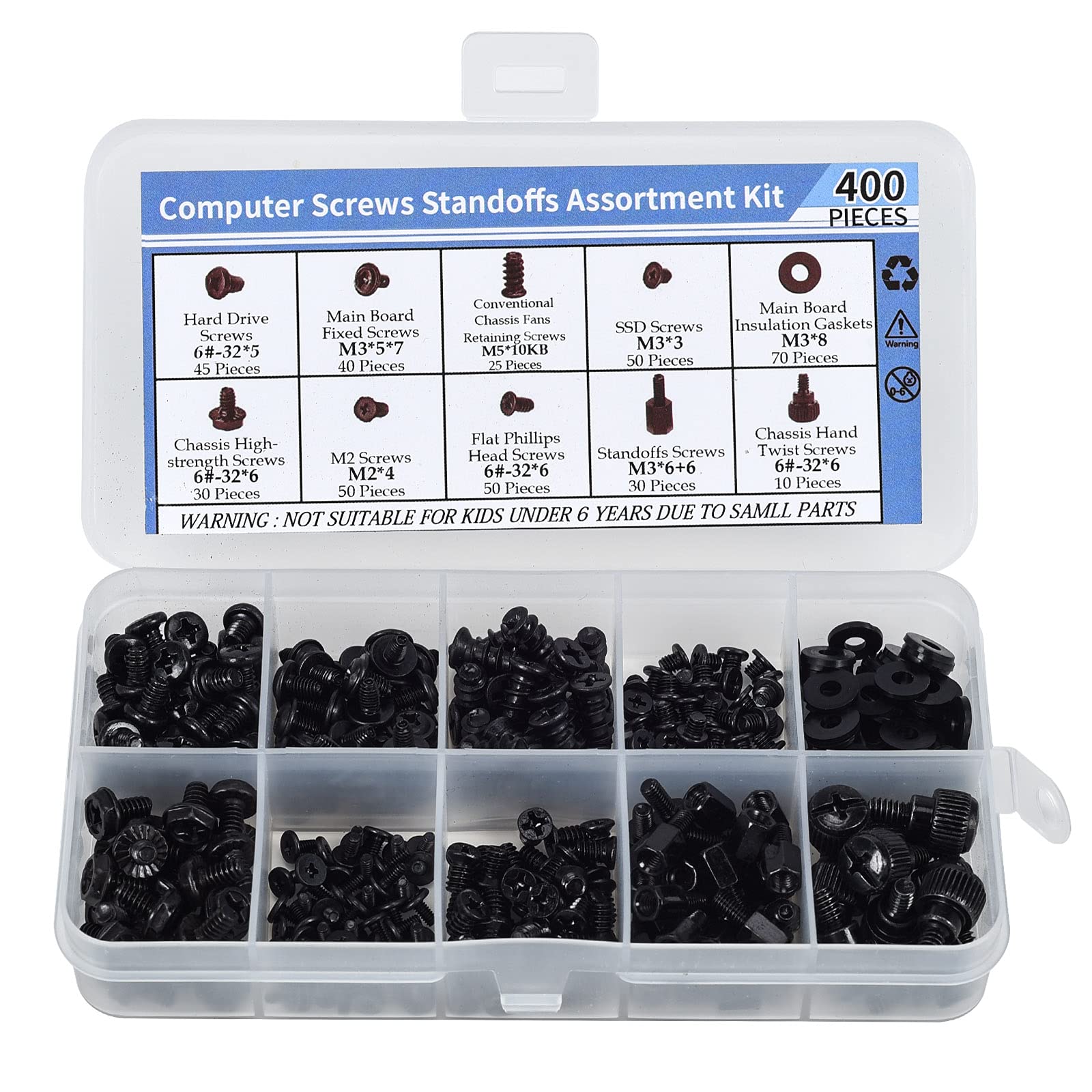 400PCS Computer Screws Motherboard Standoffs Assortment Kit for Universal Motherboard, HDD, SSD, Hard Drive,Fan, Power Supply, Graphics, PC Case for DIY & Repair