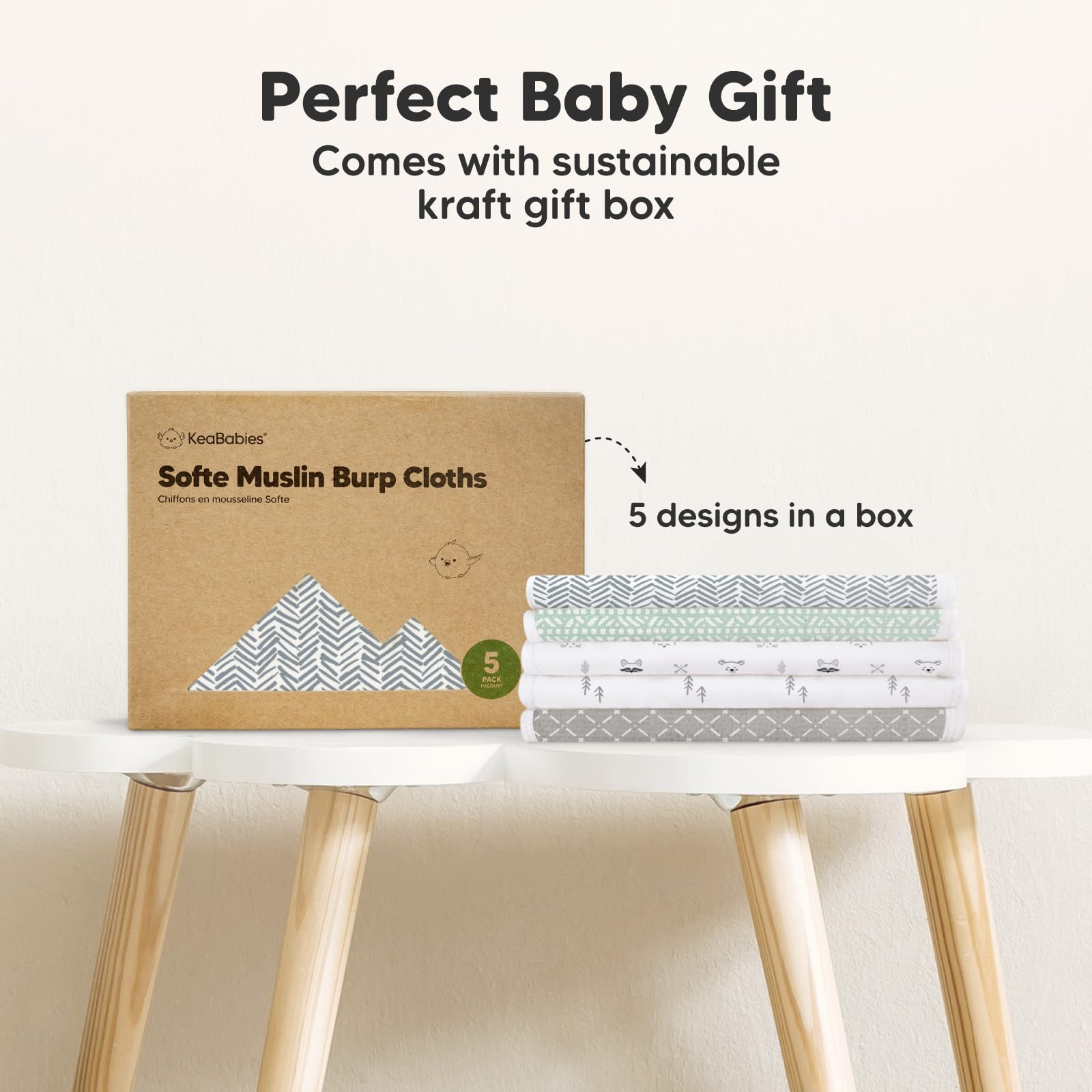 • 5-Pack Muslin Burp Cloths Set – Discover the wonders of parenthood with KeaBabies Softe Burp Cloth. Our muslin burp cloths offer freshness and comfort, creating memorable bonding moments for you and your little one.