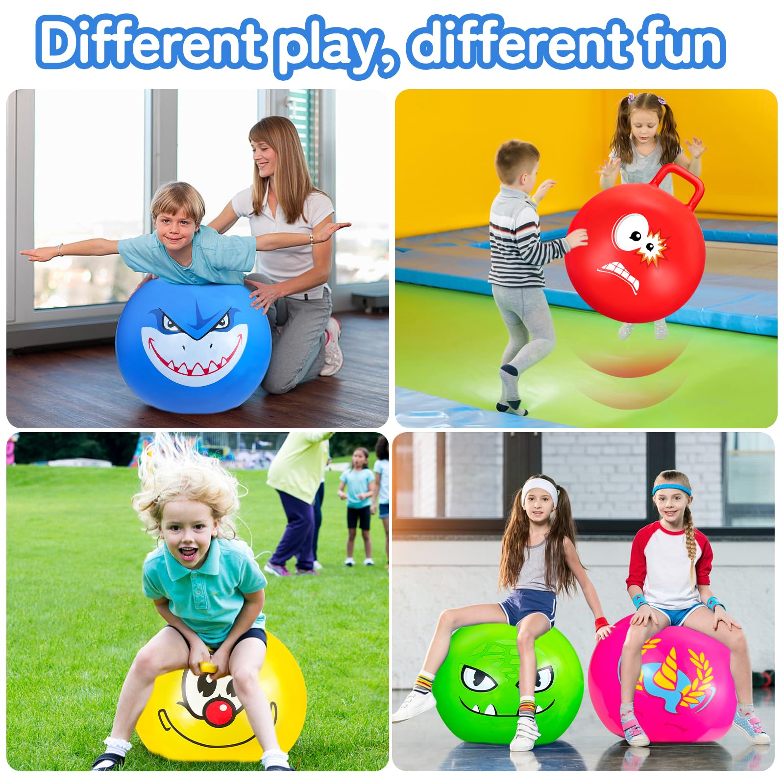 5 Pcs Hopper Ball Carnival Outdoors Jumping Hopping 18 Inch Bouncing Ball with Handle and Air Pump for Kids Sports School Ride Games Balance Exercise Fun