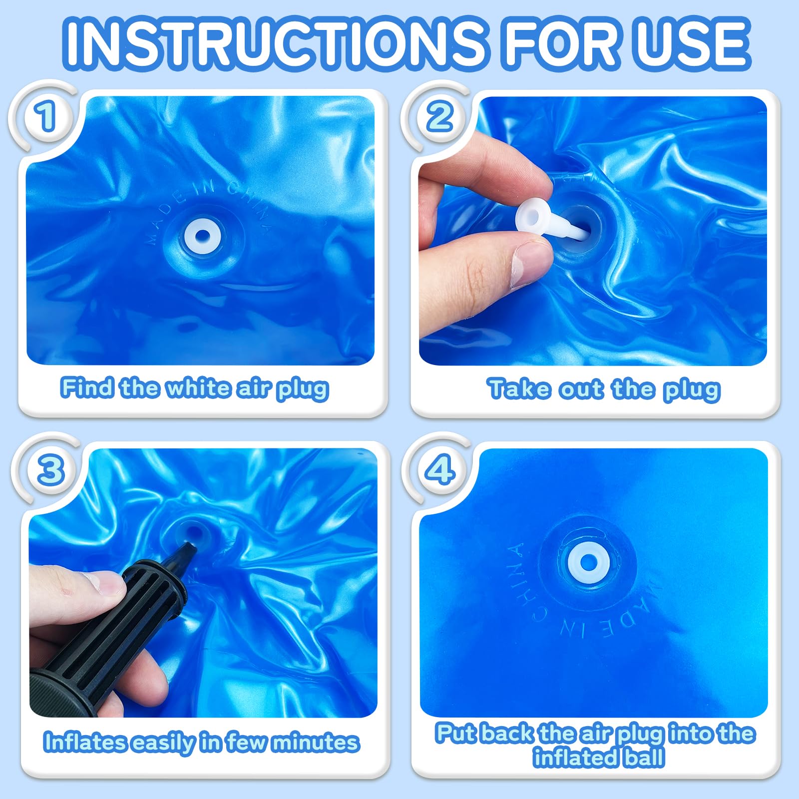 • ๐—œ๐—ป๐—ณ๐—น๐—ฎ๐˜๐—ถ๐—ผ๐—ป ๐—œ๐—ป๐˜€๐˜๐—ฟ๐˜‚๐—ฐ๐˜๐—ถ๐—ผ๐—ป๐˜€: Take out the filler plug of the fitness ball, insert the tip of the pump into the air hole, and push the air pump by hand to inflate the ball to the appropriate size. A little air will leak when removing the filler plug, so the filler plug needs to be quickly installed back into the air hole