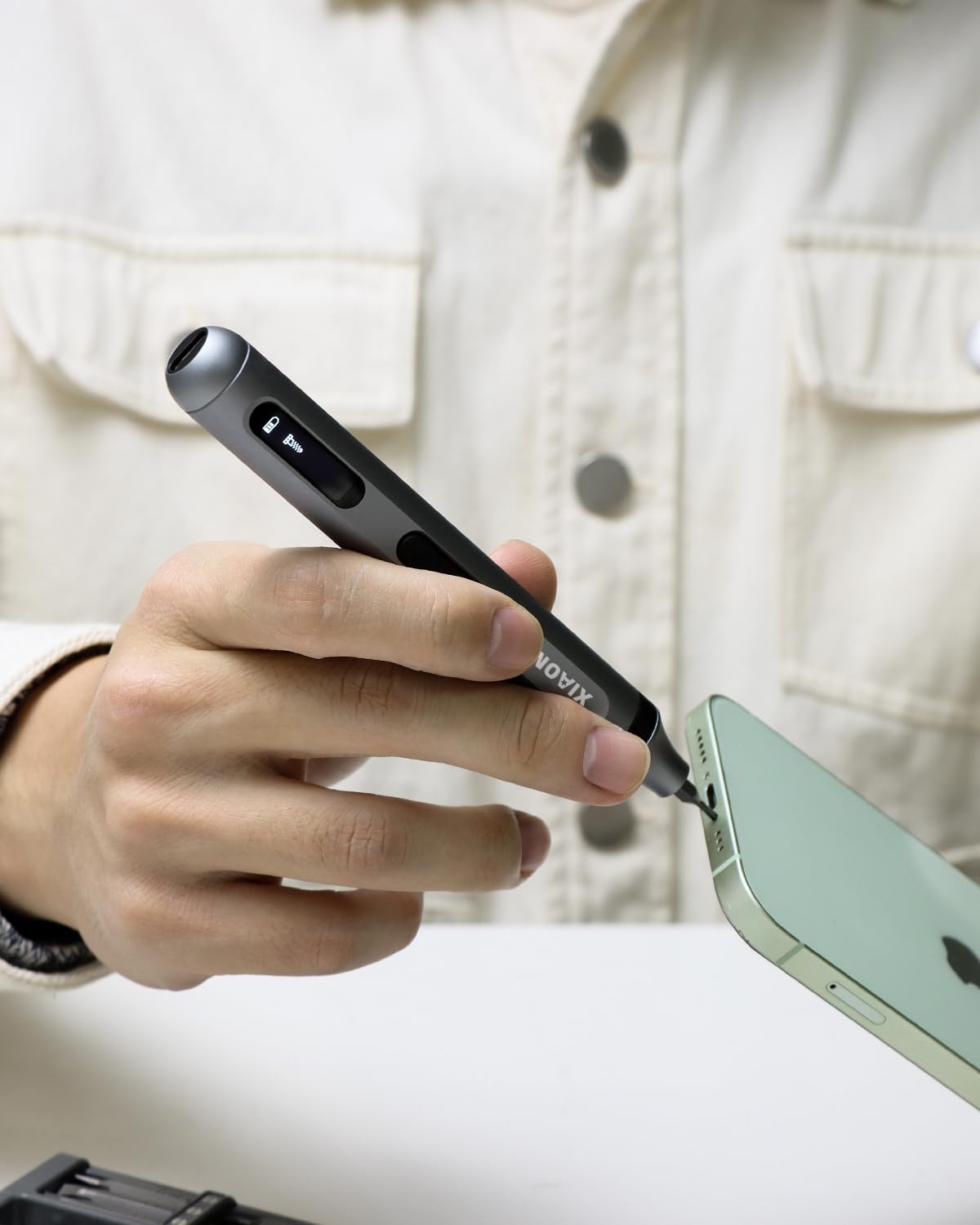 • Ergonomic Design & Transparent Case: Xiaonian electric screwdriver cordless features a pen-like, non-slip grip design with aluminium alloy construction. The transparent case allows for convenient charging without removing the screwdriver.