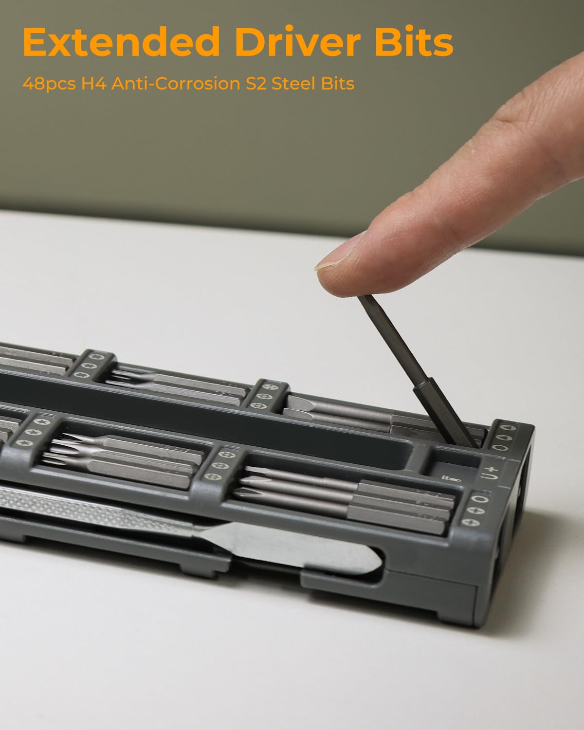 • Comprehensive 52 in 1 screwdriver set electric & All-Metal Construction: Xiaonian mini precision screwdriver set is equipped with 48pcs S2 steel bits for various electronic repairs, housed in a durable all-metal construction. Ideal for assembling or disassembling devices like tablets, smartphones, watches, cameras, drones, and repair tool kit micro screwdriver set.