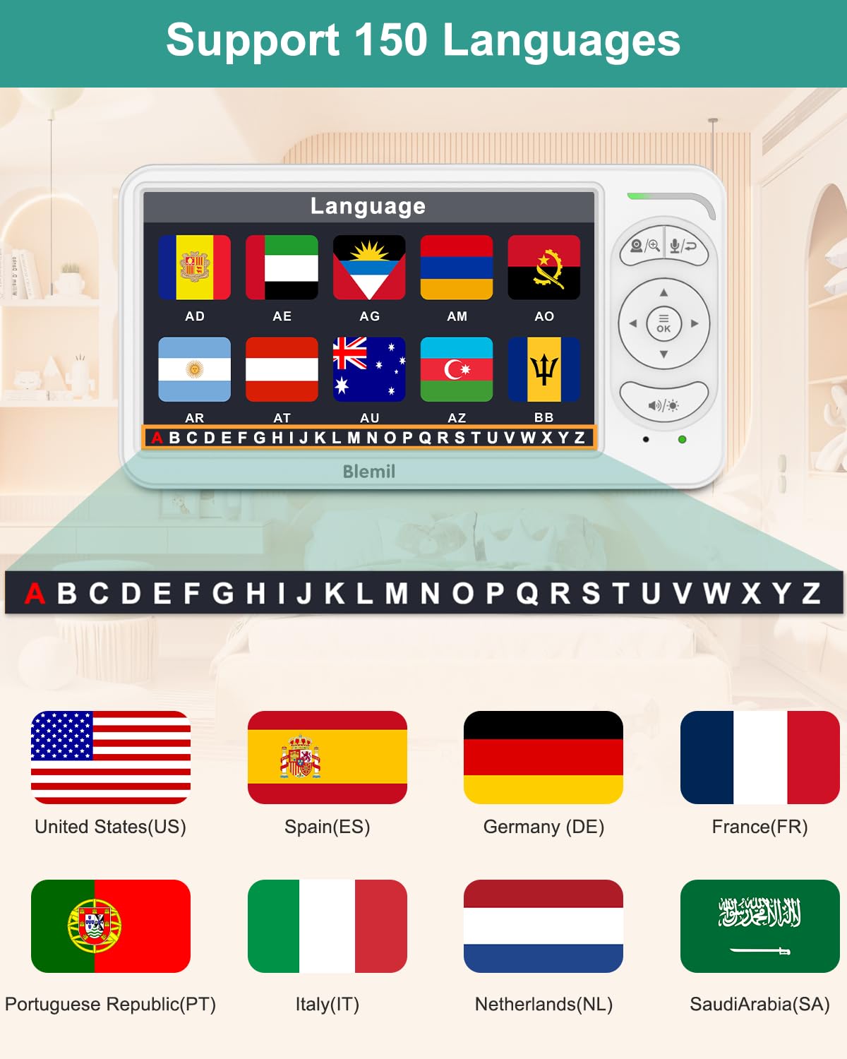 6" Baby Monitor with 2 Cameras and Audio 30 Hours Battery Upgrade Split Screen Video Baby Monitor Remote Pan-Tilt-Zoom 178°Wide-Angle 150 Languages No WiFi ECO 2-Way Talk Night Vision 1000ft Travel