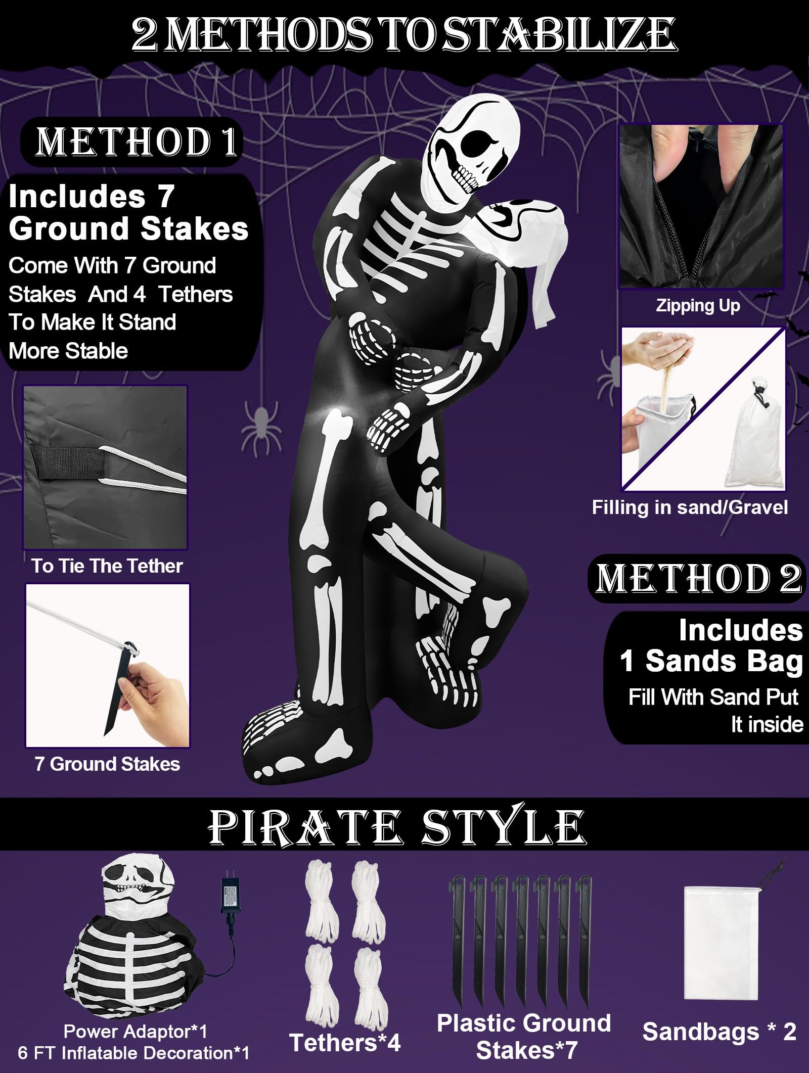 • Built-in Lights and Stable Design: Halloween skull couple inflatable with 4 LED lights for a bright night display. Package includes 2 tethers and 1 sandbag; fill the sandbag and place it inside the decor, stability in windy or rainy weather