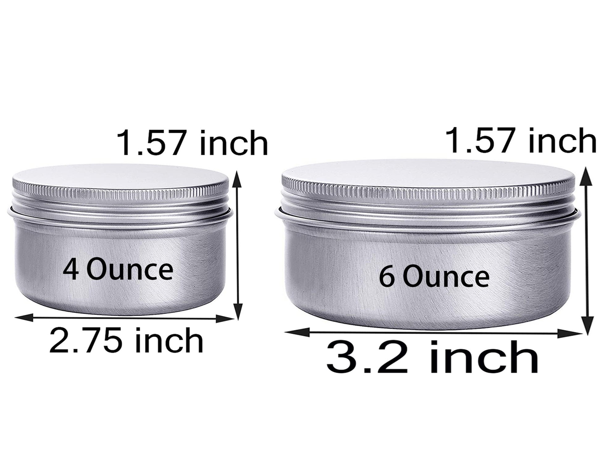 Details: 6 ounce Aluminum Screw Lid Containers, screw top lids for tight sealing, no worries of leakage, for home, office, workshop, school storage, They are also suitable for slime storage, making candles and handmade lotions.