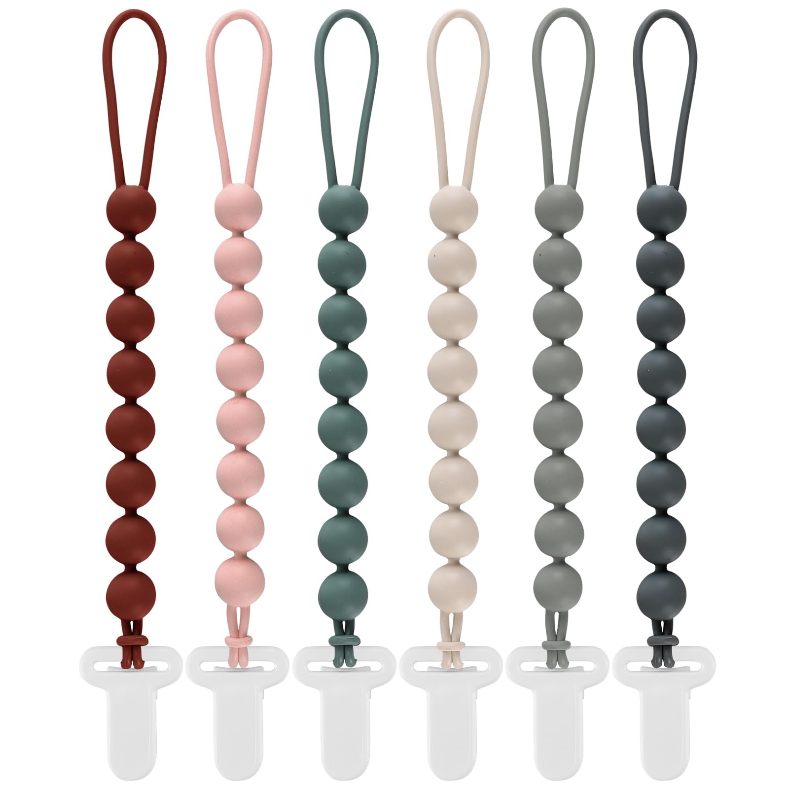 6-Pack Silicone Pacifier Clips for Babies, Safe Teething Beads, Rust-Free Holders, Baby Boy and Girl Essentials, Newborn Must-Have Accessories, BPA-Free