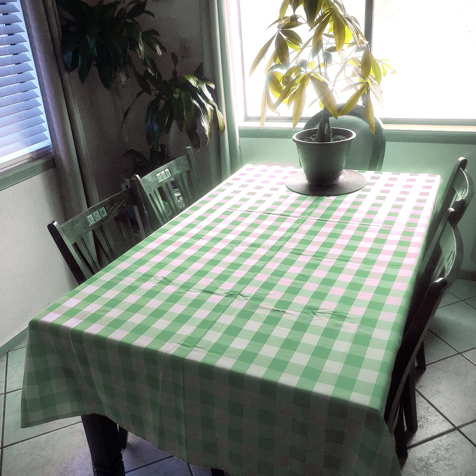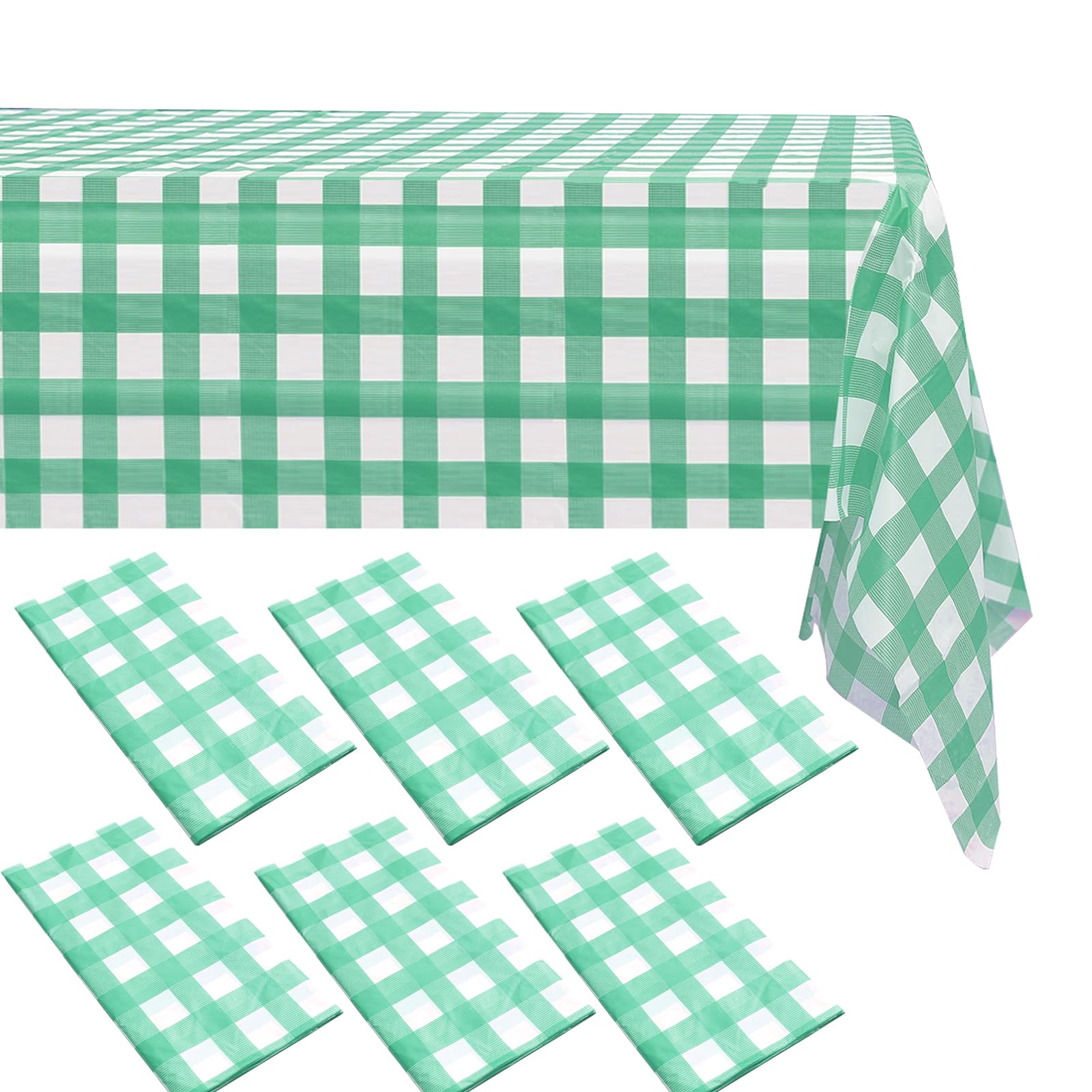6 Packs Green Gingham CheckeGreen Table Cloth Party | 54x108 inch | Green Plastic isposable Table Cover Party | White Plastic Tablecloth | Party Table Clothes for Parties BBQ Picnic Birthday Wedding