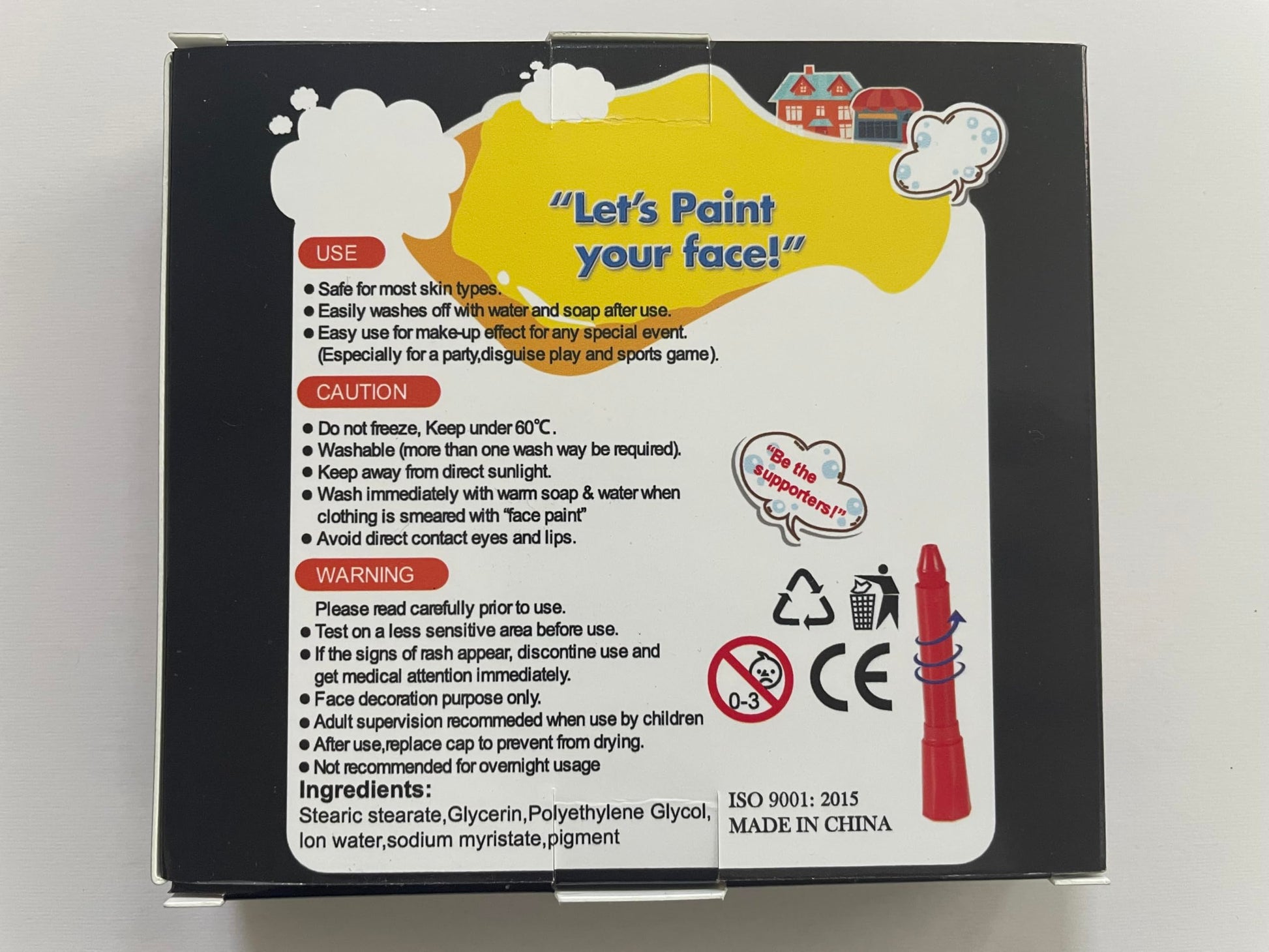 • [Safe for Skin] The face painting set includes washable crayons that are easy to remove with mild soap and warm water and will not irritate the skin of children and adults. If you are a little concerned, it is recommended to do a small skin test before use.