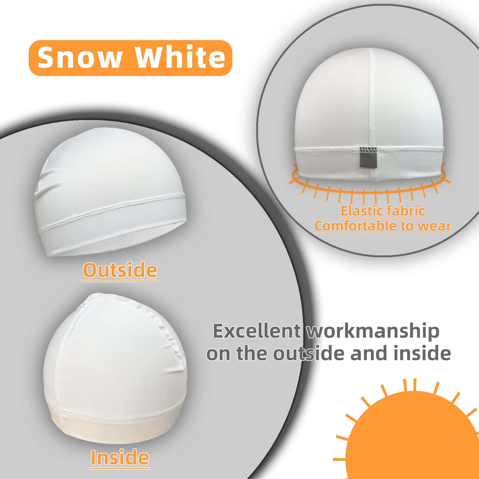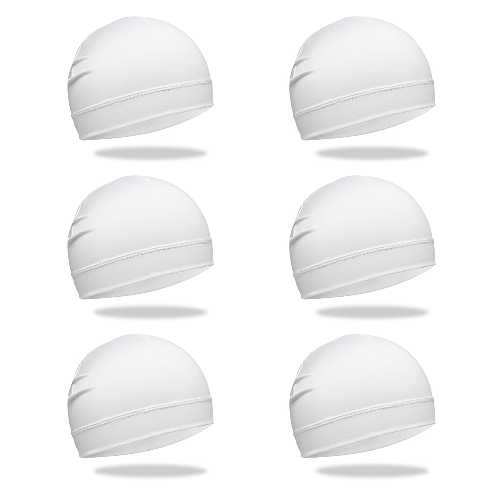 6 Pcs Skull Cap Sweat Wicking Helmet Liner Breathable Cycling Beanie White Running Sports Hat Cooling Head Wraps for Men (White Pack)