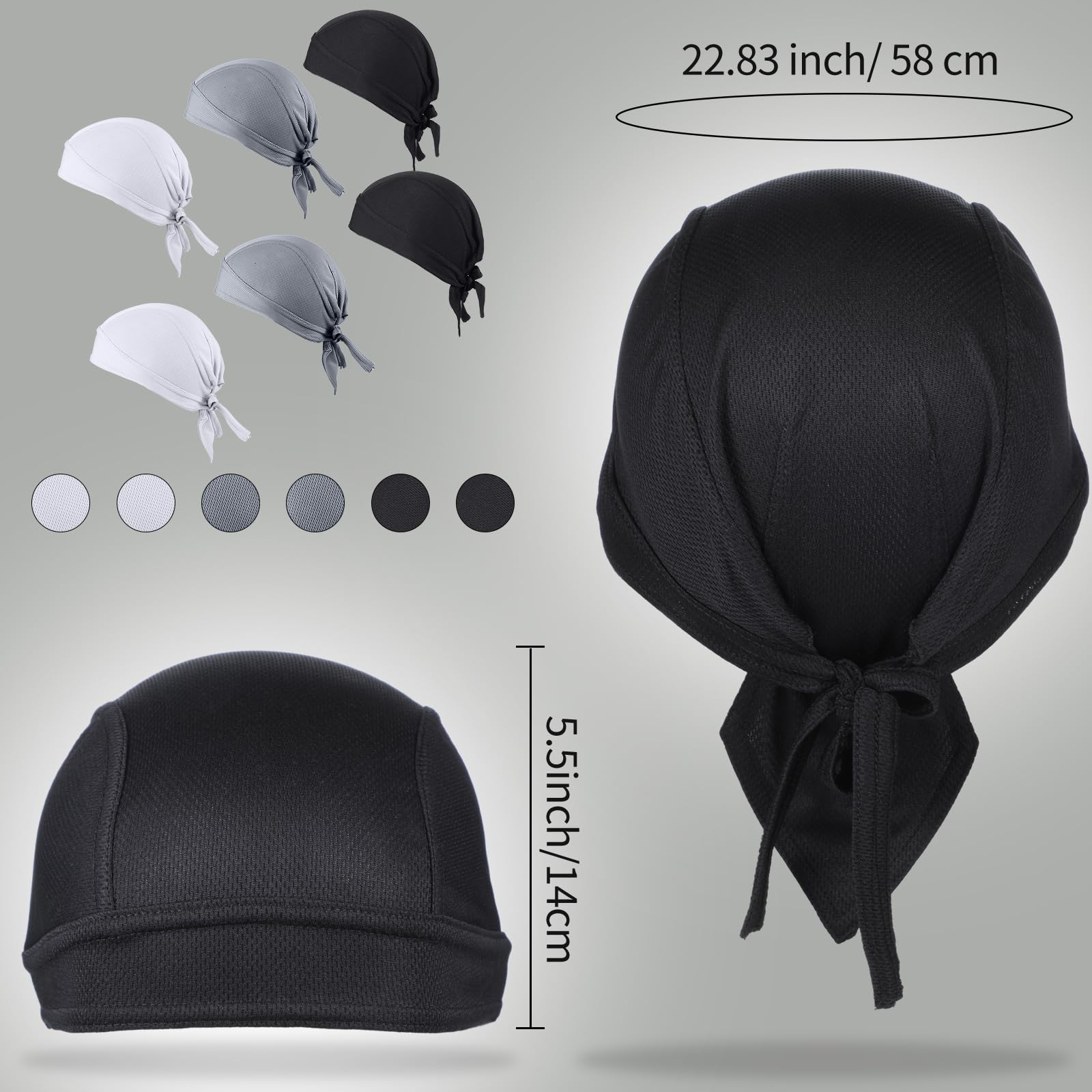 6 Pieces Do Rags Sweat Wicking Beanie Cooling Durags Skull Cap Motorcycle Head Wrap Bandana for Men Women (Black, White, Gray,Simple Style)