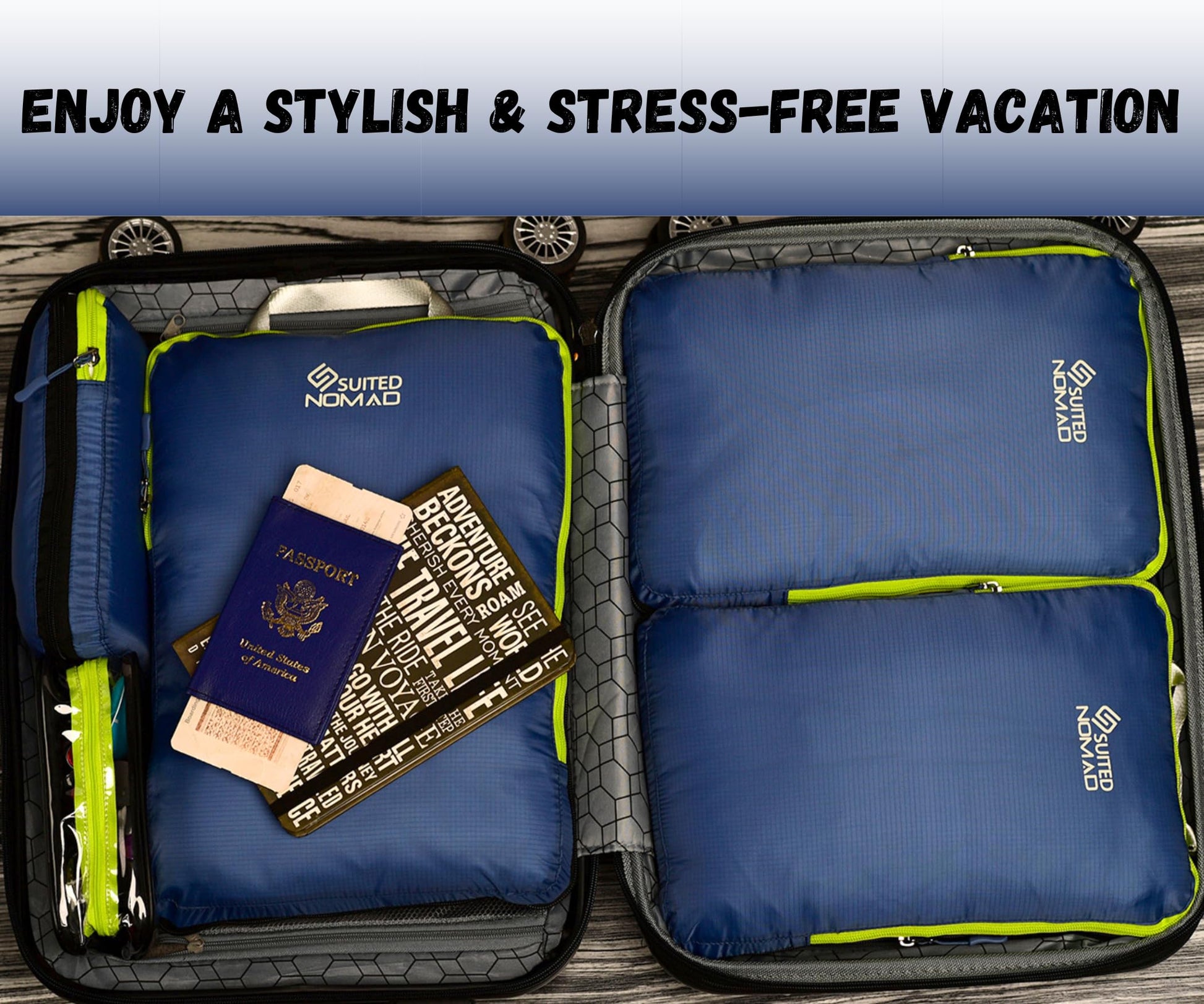 • Save that needed space and time while packing - double zipper compression system that vacuum the excess air from the cubes and makes them incredibly compact.