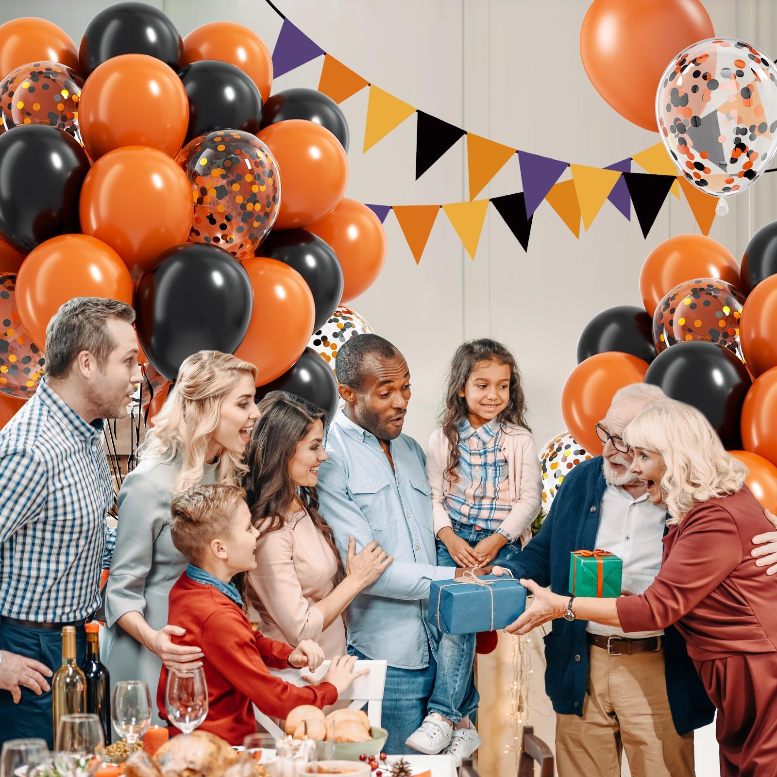 60pcs Orange and Black Halloween Balloons, 12inch Black Orange Latex Confetti Balloons for Ghost Halloween Birthday Party Decorations