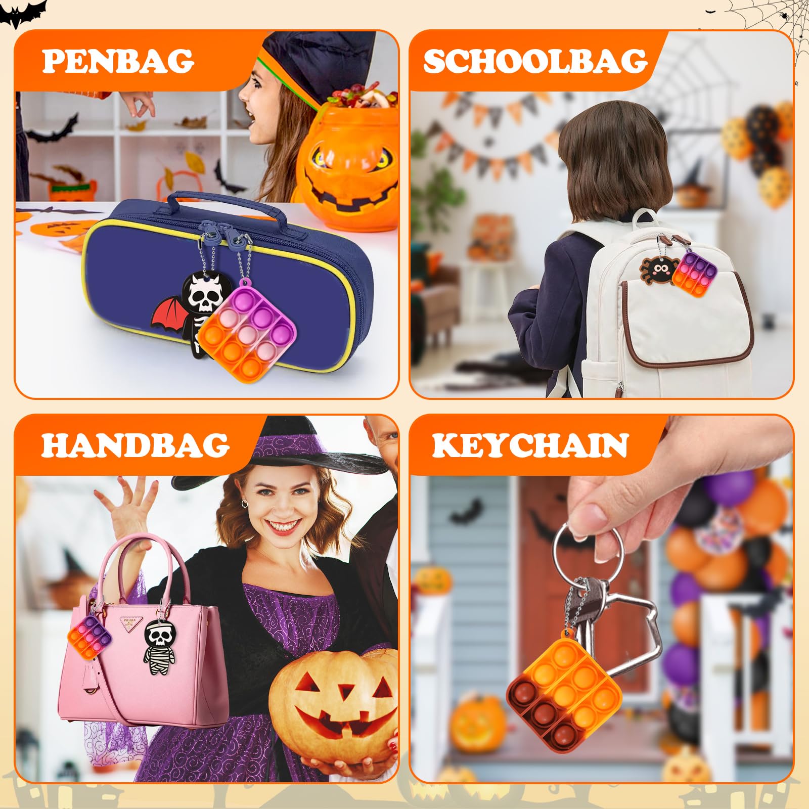 64Pack Halloween Mini Pop Fidget Toys Pack with Cartoon Letter Party Favors, Silicone Squeeze Pop Bubble Fidget Bulk Sensory Toys, Pop Keychain Bubble Toy Party Bag Fillers for Kids
