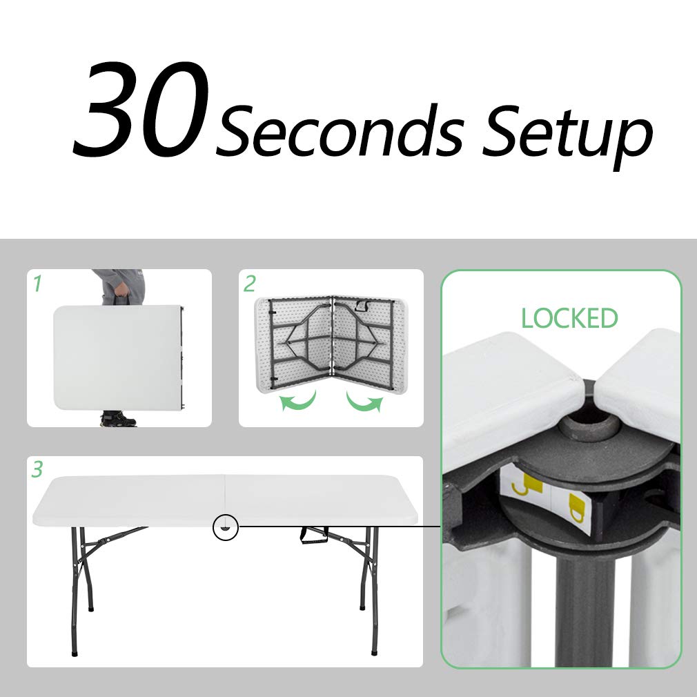 6FT Picnic Table Folding Table Camping Table Plastic Table Fold Up Table Lock for Party Event,White