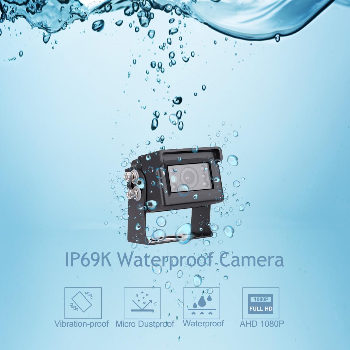 • 【HEAVY DUTY CAMERA】It is color camera with the resolution of 1080P, provides super clear and real color image. The viewing angle is 120 degree. With waterproof rating IP69K(the highest level), with night vision. So it works perfectly in kinds of weathers. With Heavy duty, 10G vibration-proof rating, it works well with the vehicle which has intensive vibration in extreme conditions.
