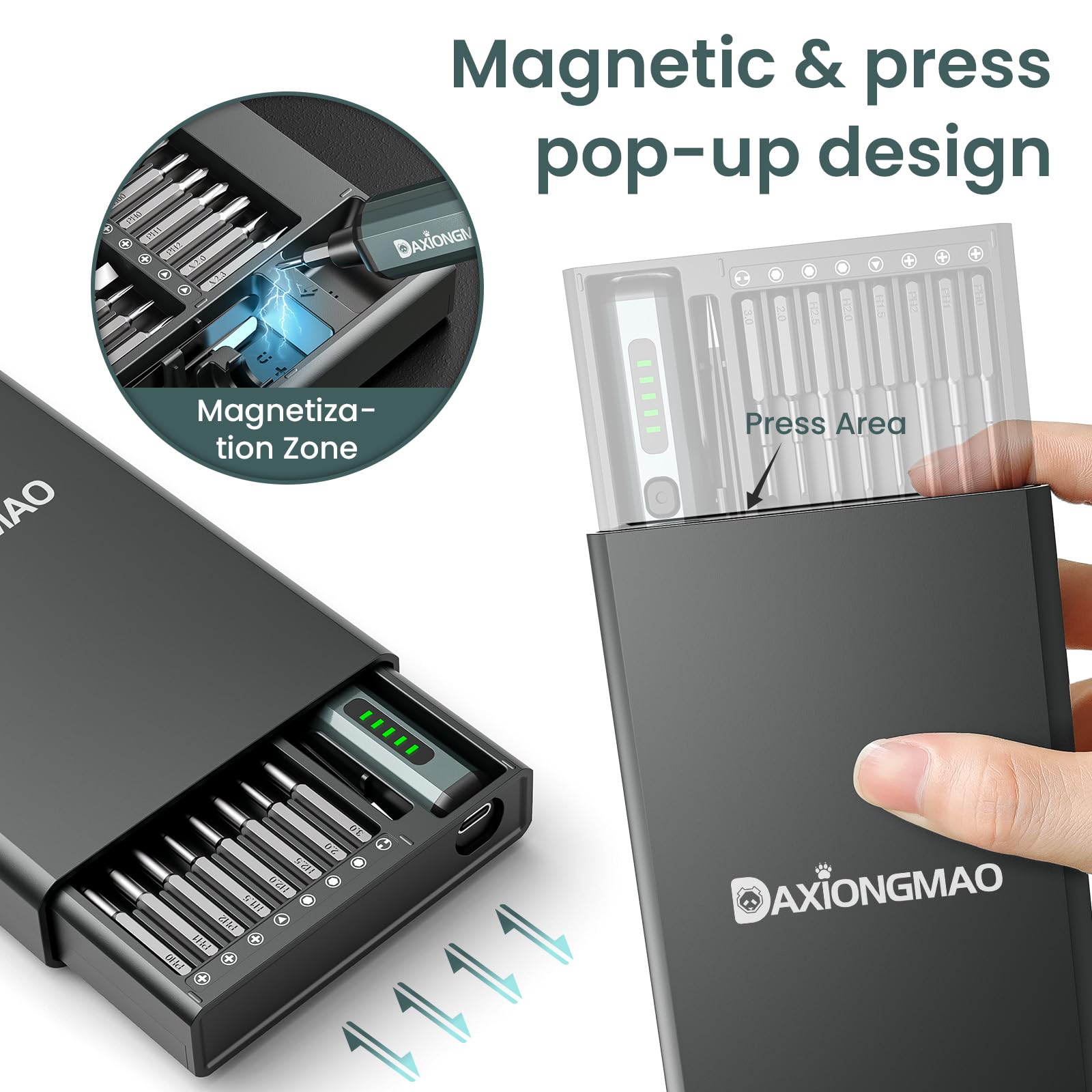 • 🧲【Magnetic Tactical Case|Military-Grade Protection, 3-Second Access】Magnetic pop-up case opens instantly. Shockproof structure + foam liner withstands harsh workshops/garages. Satisfying click feedback. Ultimate organization for tool enthusiasts