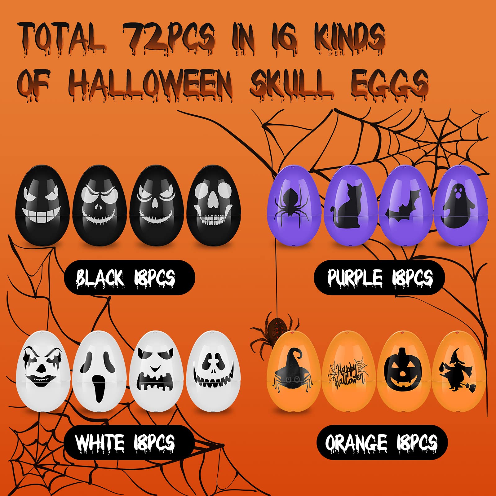 72 Pieces Halloween Skull Eggs Halloween Easter Plastic Eggs Halloween Eggs Plastic Fillable Scavenger Hunt for Trick or Treating Candy Box Mini Halloween Eggs for Halloween Party Supplies