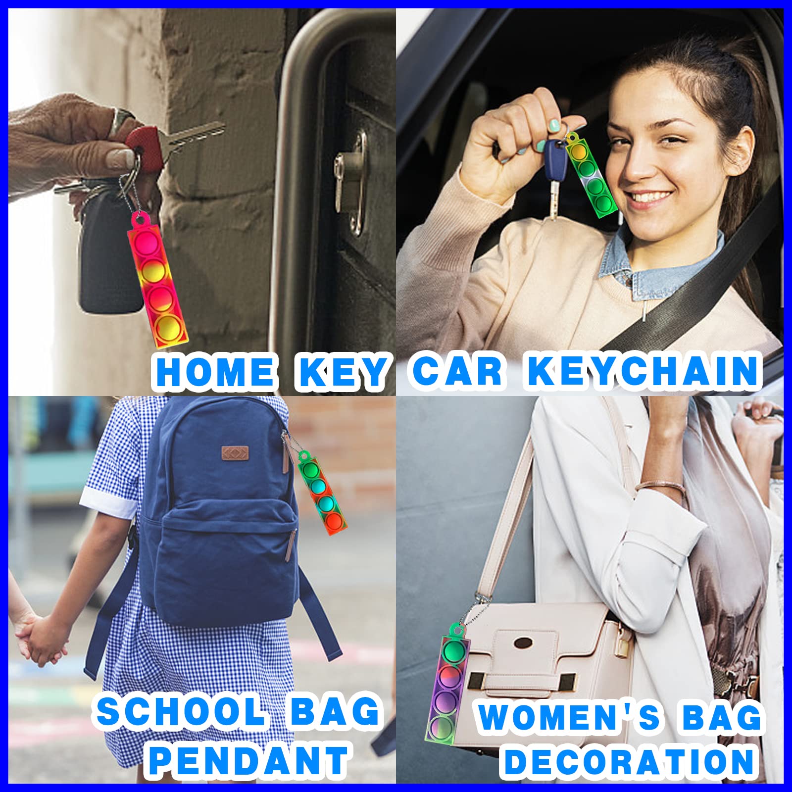 • ❤️MINI POP KEYCHAIN TOYS : Mini pop keychain toys are lightweight, waterproof. Size: 3 *0.78 inch. Mini pop keychain can be hung on a school bag, a key can be hung, and it can be pressed to play.Can be reused and cleaned.