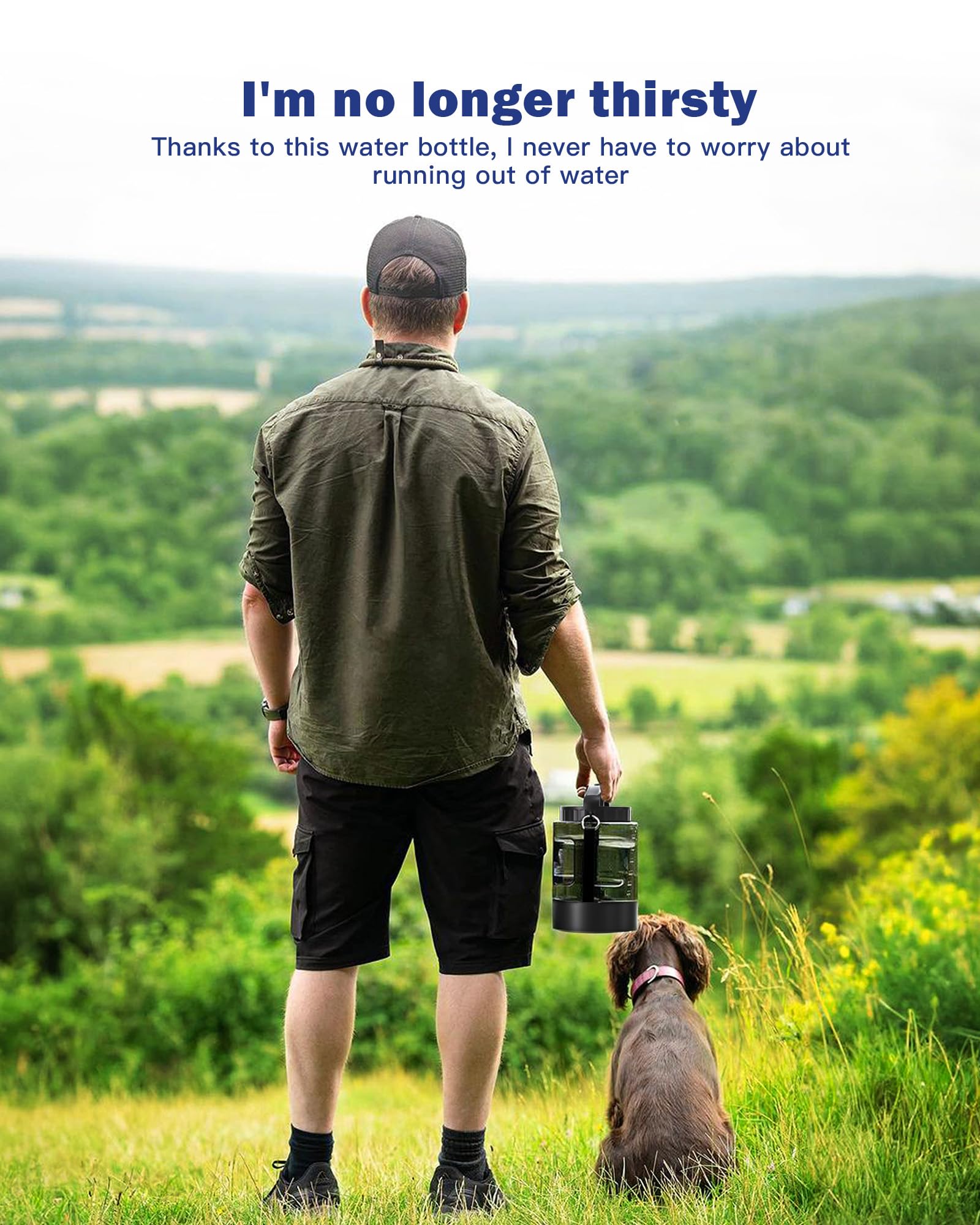 • 🏡【Portable & Travel-Friendly Dog Water Jug】Equipped with an ergonomic handle, hand strap, and metal carabiner, this travel dog water bottle clips onto backpacks, leashes, or bags for easy carrying. The clear capacity markings help you track how much water your pet is drinking, keeping them healthy and hydrated.