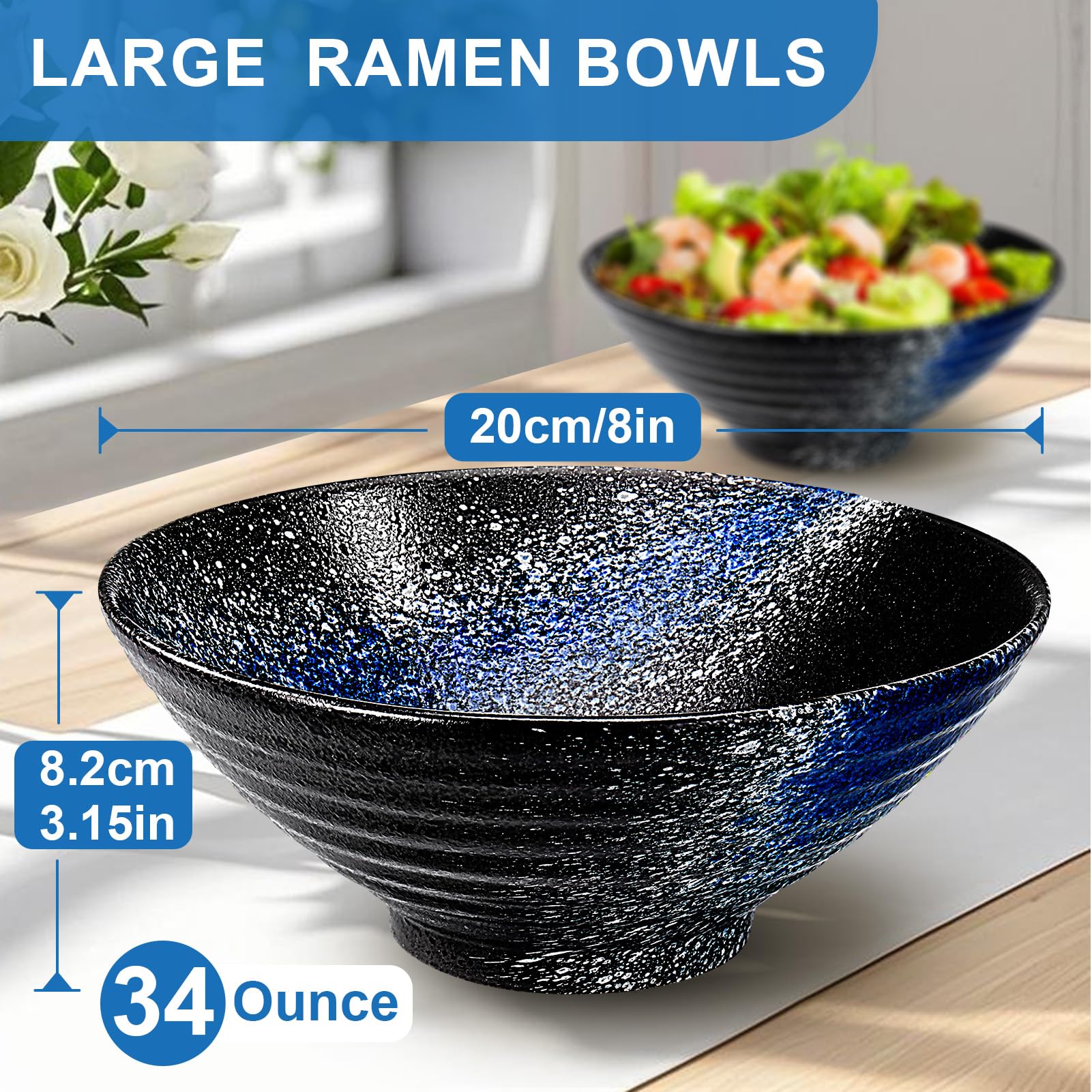 • HUGE CAPACITY: YTLEMON Ramen Bowl Set contains 2 ceramic bowl of 1000ml/34oz capacity, 2 wooden Forks and ramen spoons, 2 pairs of wooden chopsticks.Each pasta bowl measures 20.3 cm/8 inches in diameter and 8.2 cm/3.15 inches in height. Comes with 1000DAYS electronic ramen cookbook for you