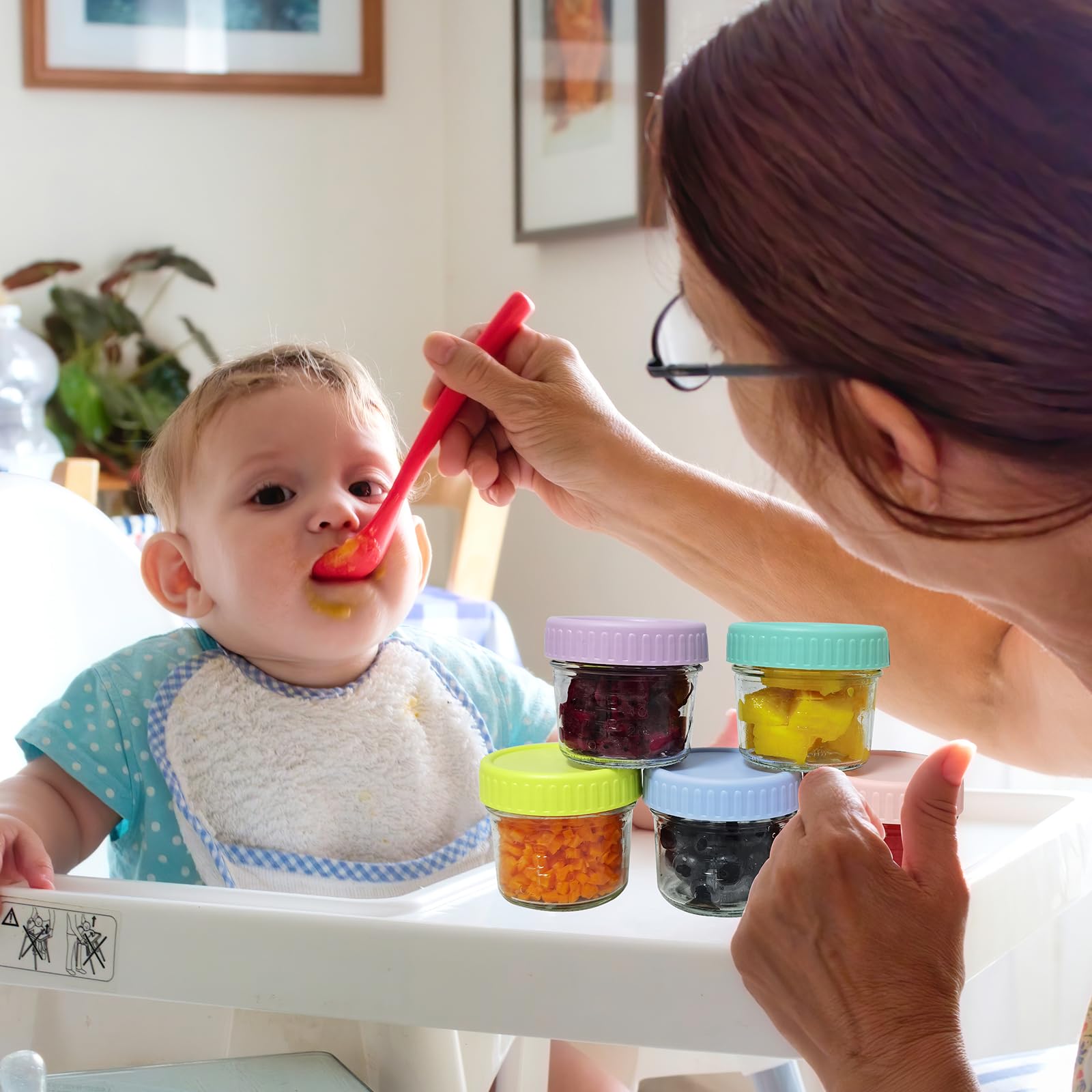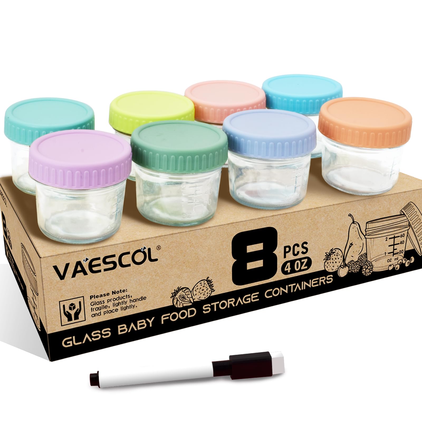 • BABY FOOD STORAGE CONTAINERS: Each set has 8 baby food jars with lids, 4 oz each. Prepare and store multiple servings of solid food for your child in batches. Or mix and match different serving sizes for a balanced meal! Great for storing homemade baby food, solid baby food, fruit and vegetable purees, jams, and more.